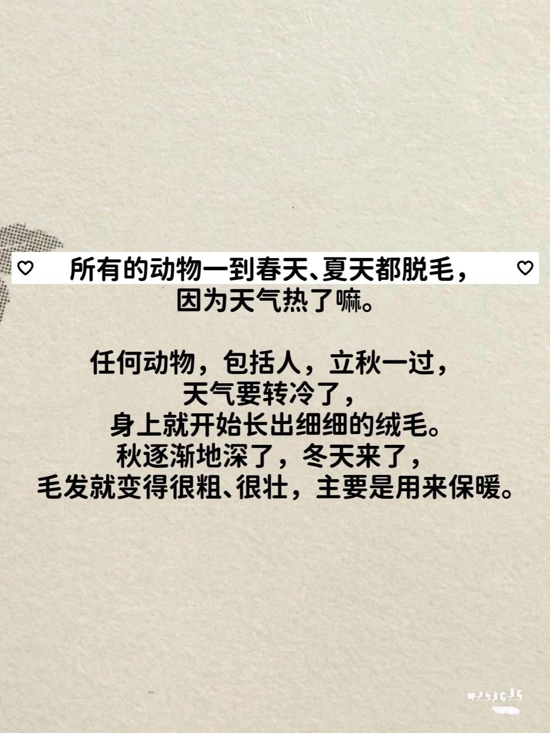 秋逐渐地深了,冬天来了,毛发就变得很粗、很壮,主要是用来保暖。