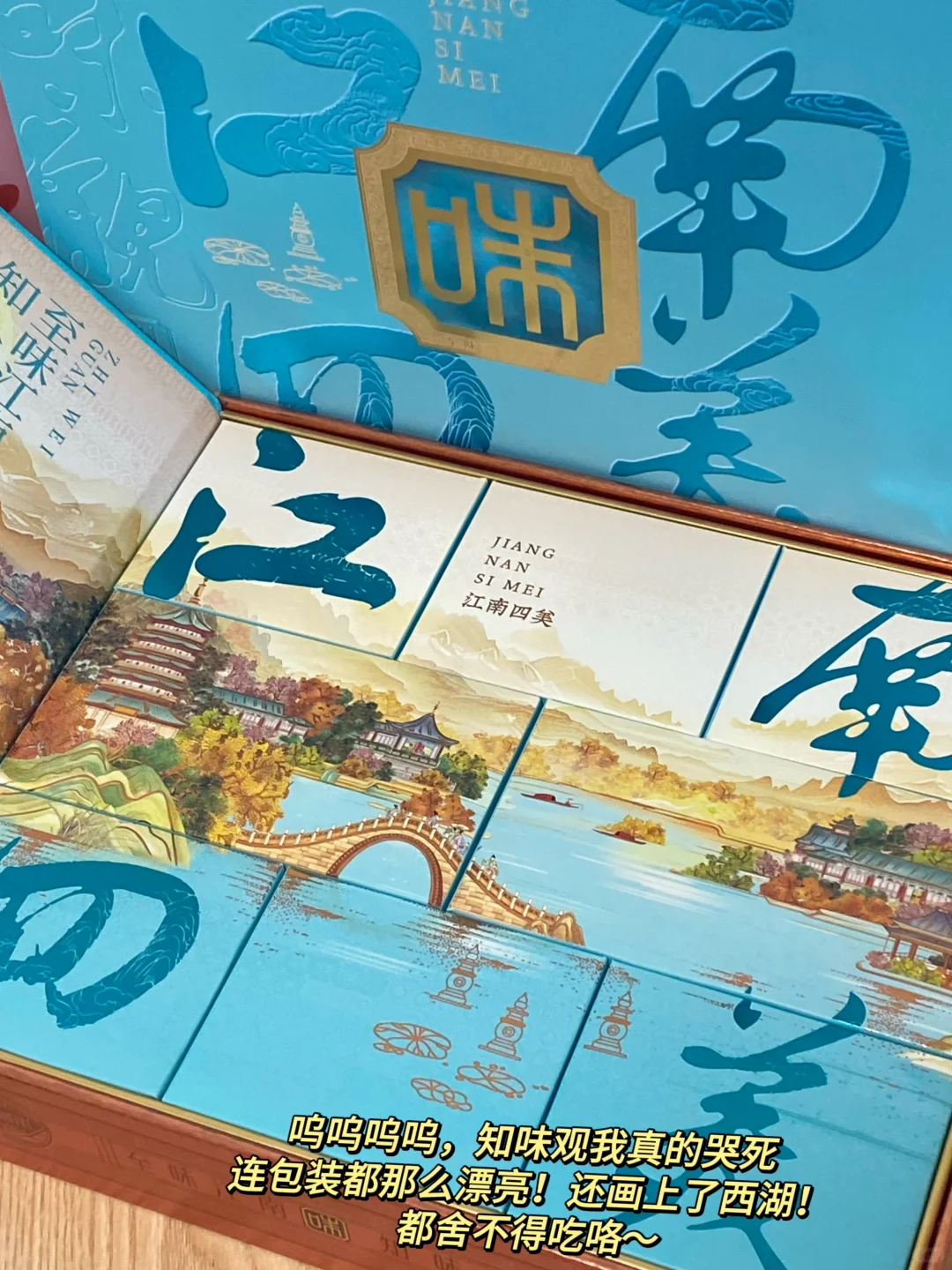 今天测的是杭州特产知味观的江南四美月饼礼盒!