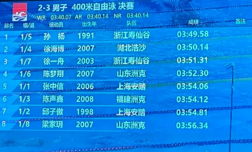 今天晚上孙杨复出400米决赛,妻子张豆豆和父母坐在观众席观看,张豆豆忙个不停,给递的本子,照片签名。 今天孙杨400米成绩是3分49秒58,四年没有科学训练和参加比赛,有这个成绩说明没有自甘堕落,但想要游到3分45秒是不可能。游泳也是吃青春饭,年龄一大就不可逆,恢复科学训练也是提高个1到2秒。