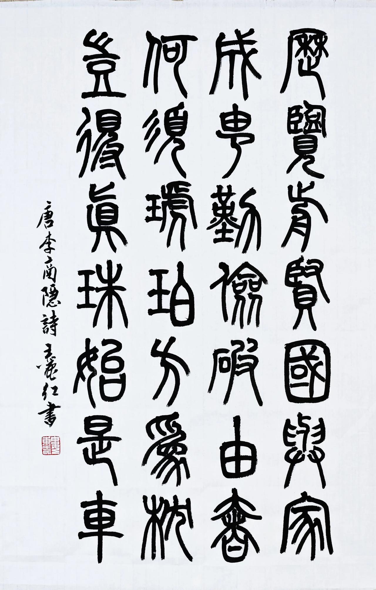 王丽红楷书与篆书: 历览前贤国与家, 成由勤俭破由奢。 何须琥珀方为枕, 岂得真珠始是车。 ——李商隐《咏史》