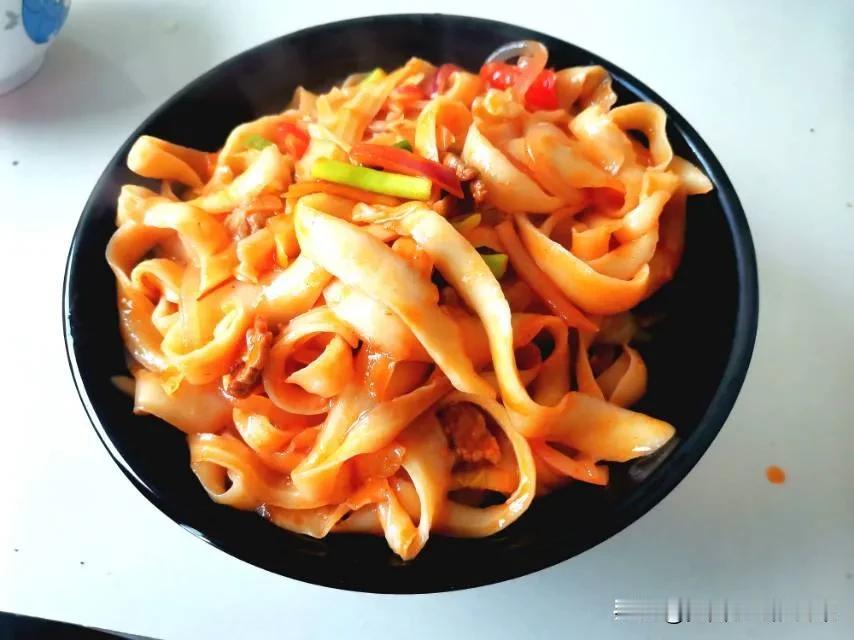 今天来个老家的炒面片,里面加了土豆粉,不管口感还是味道都可以。 #美食测评团#