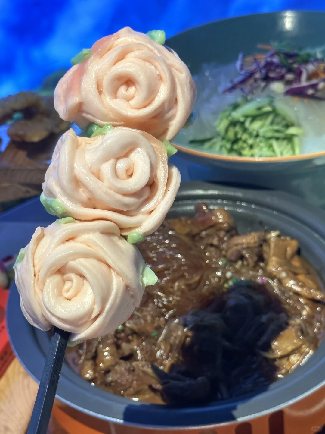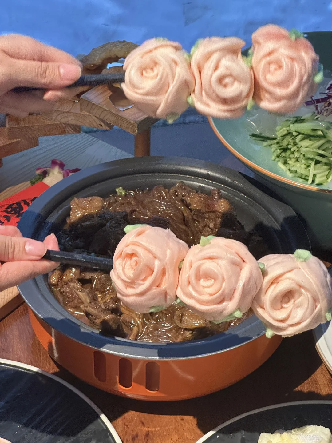 走!去见识东北菜馆把馒头雕刻成玫瑰花了!