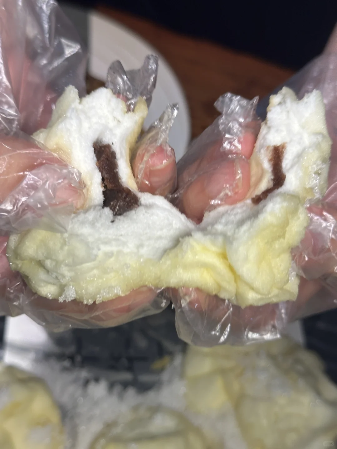 外面的雪白炸蛋白薄如纸,一口咬下即化;内里则是甜蜜浓糯的豆沙馅。口感层次分明,每一口都是满满的惊喜!
