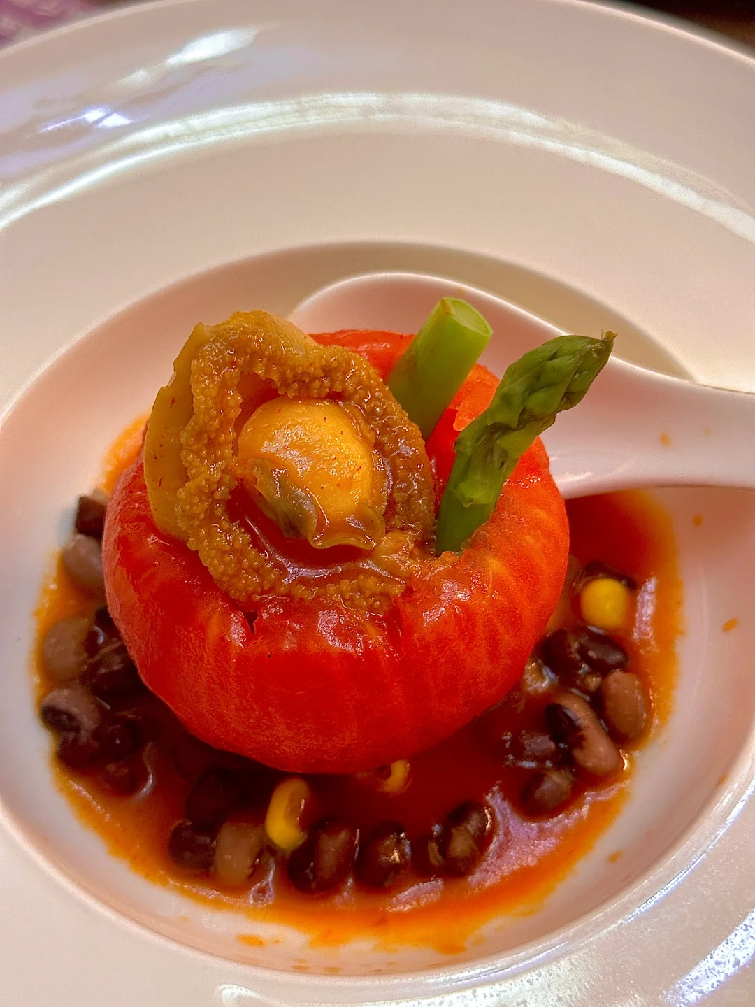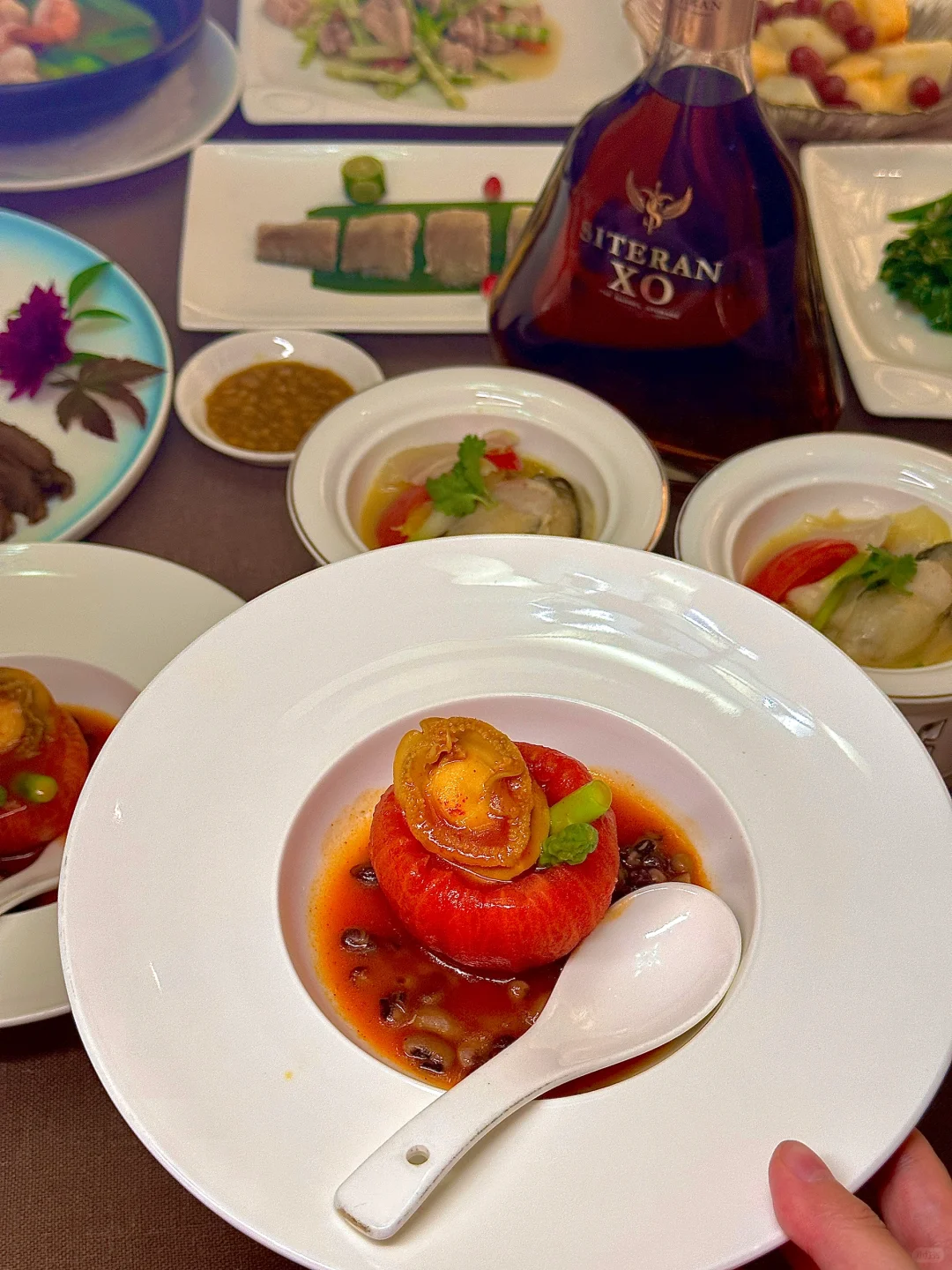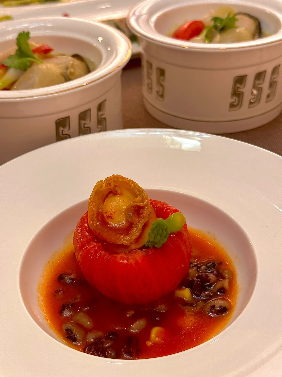 番茄五谷焗鲍鱼:这创意实在太顶了!一整个完整的番茄,🍅海鲜与五谷的跨界组合,鲍鱼嫩滑,番茄的酸甜唤醒所有味蕾,美味又高级😋