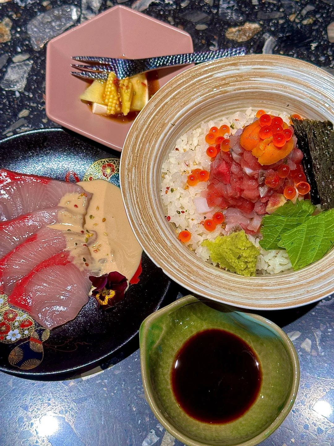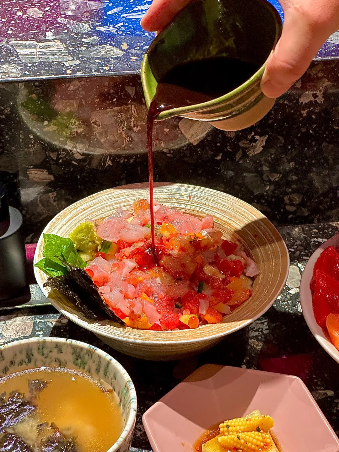 而说到汤泡饭模式,简直是二次元美食变身!先食刺身纯粹享受,再倒入那灵魂鲷鱼高汤,一碗饭两重天,我愿意称之为“寂寞治愈丼”!