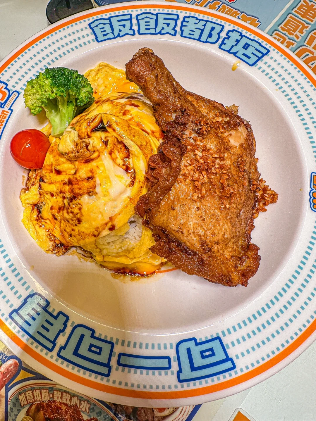 重点来了!他们的手枪大鸡腿蛋包饭,鸡肉多到犯规!🍗比我的手掌还大,汁水丰富到犯规,每一口都是满满的幸福感!😋蛋包饭软糯香滑,简直是米饭界的温柔乡!🍚