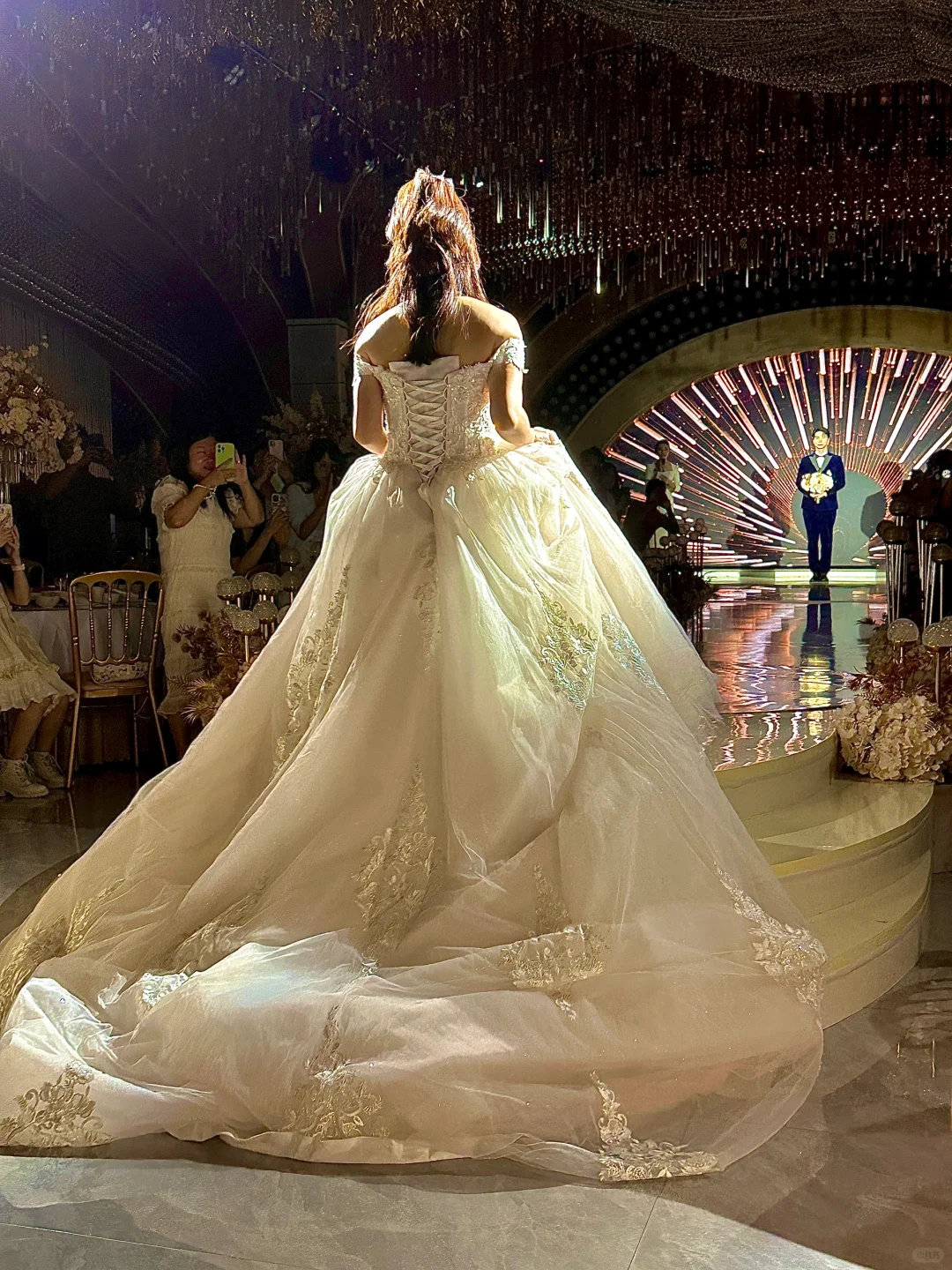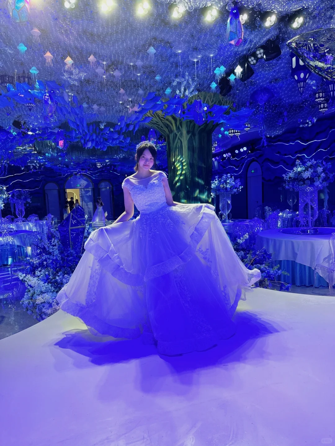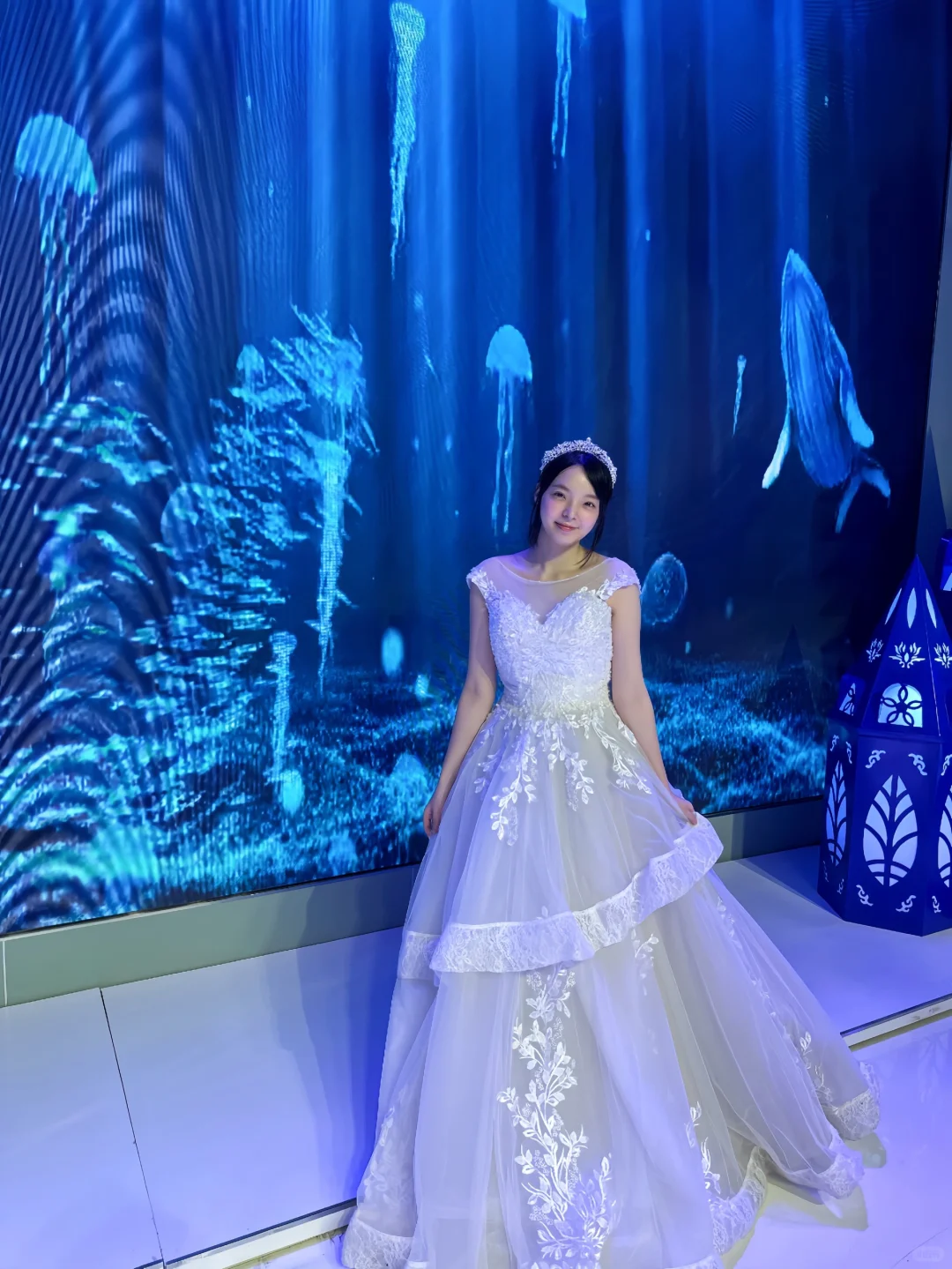 每个厅都可以试拍,试纱环节,从古典韵味的龙凤褂到梦幻轻盈的公主裙,每一转身,都伴随着工作人员的精心打理,感觉自己就是那条即将化为泡沫,却勇敢追爱的小美人鱼。