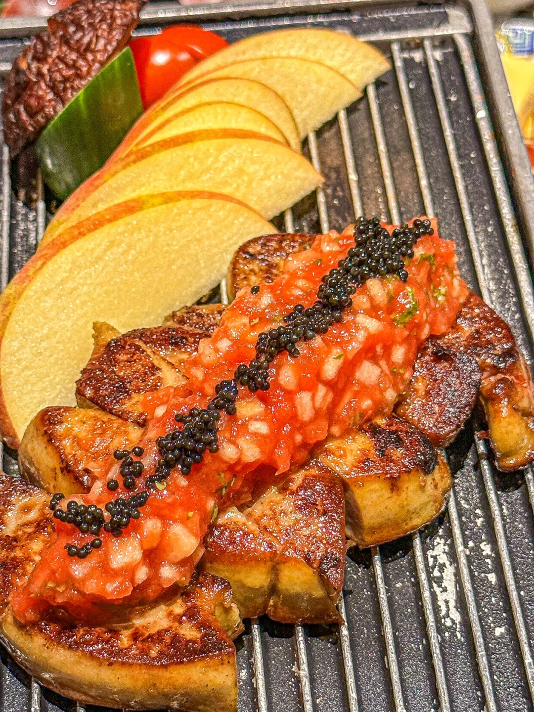 而让人感到惊艳的是那香煎鹅肝!外酥里嫩,香味四溢,搭配清爽的苹果,简直是味蕾的极致享受!吃完一口,仿佛整个人都在穿梭在日本的美景中!