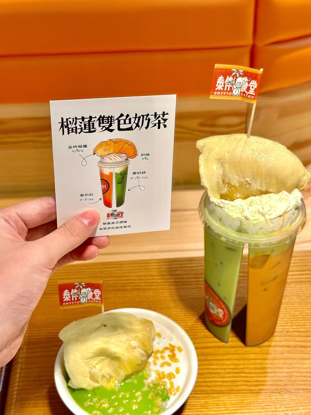新品报到!榴莲双色奶茶,这是什么神仙饮品?!🤯 抹茶绿VS奶茶棕,一半浓郁一半清新,中间还藏着一大块榴莲肉,幸福到飞起!🚀