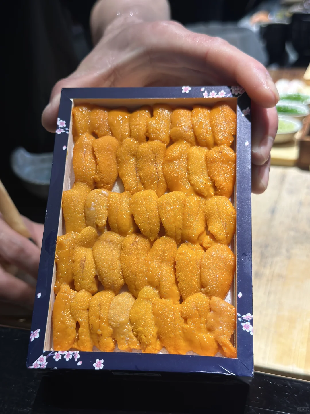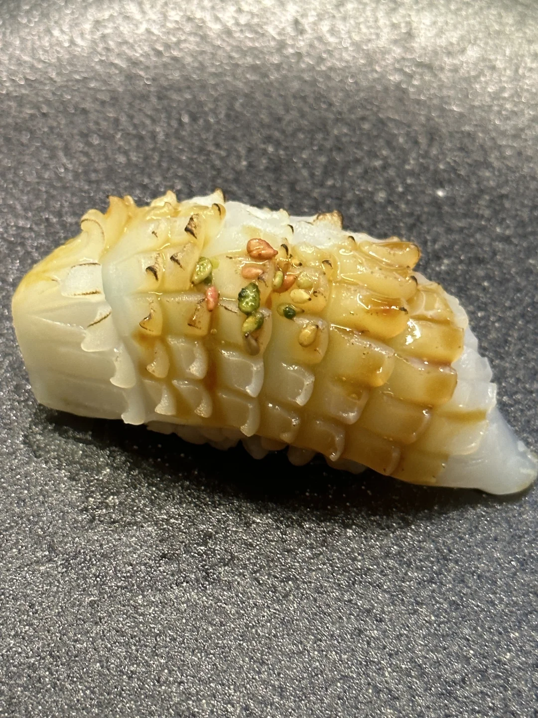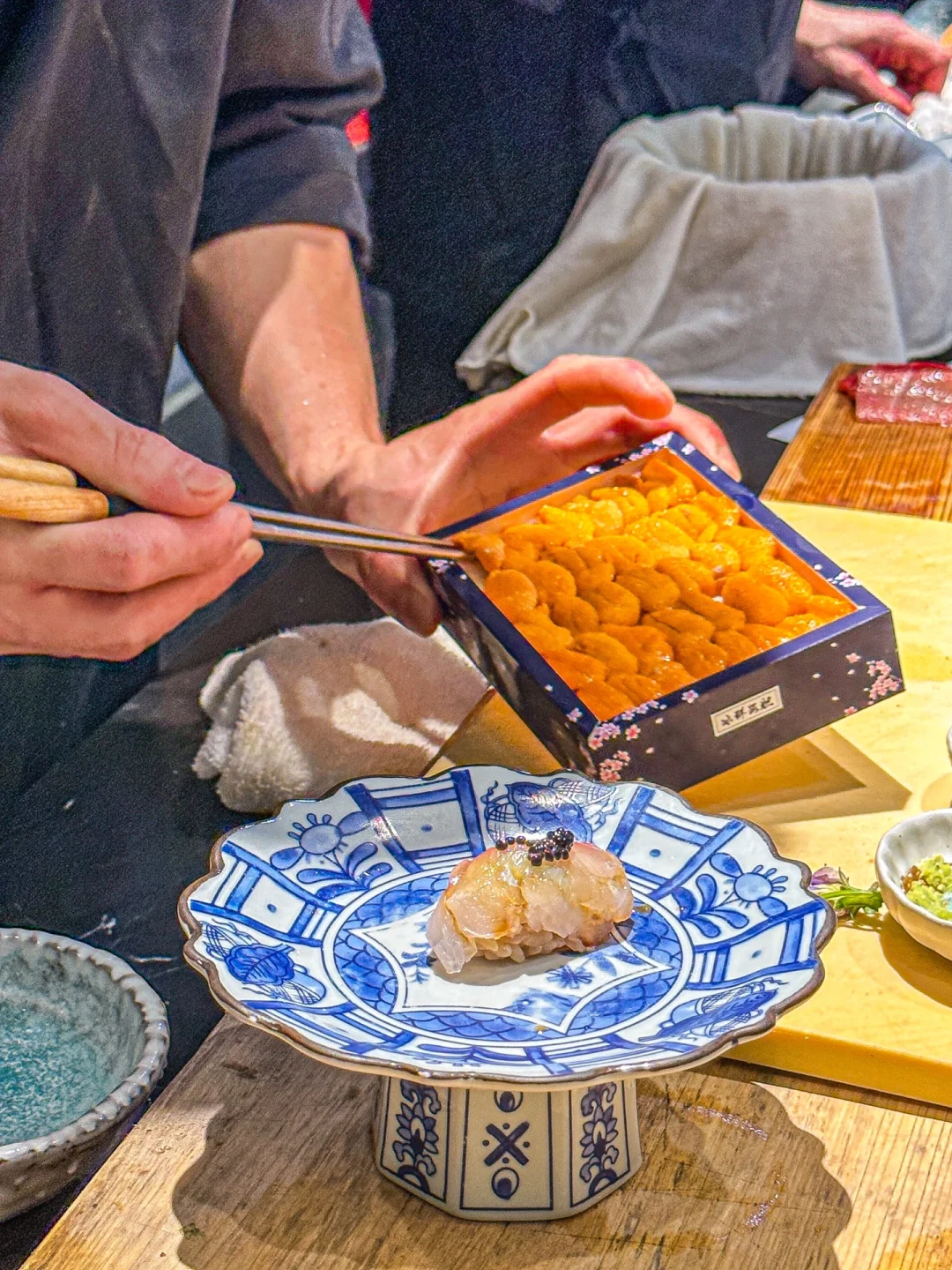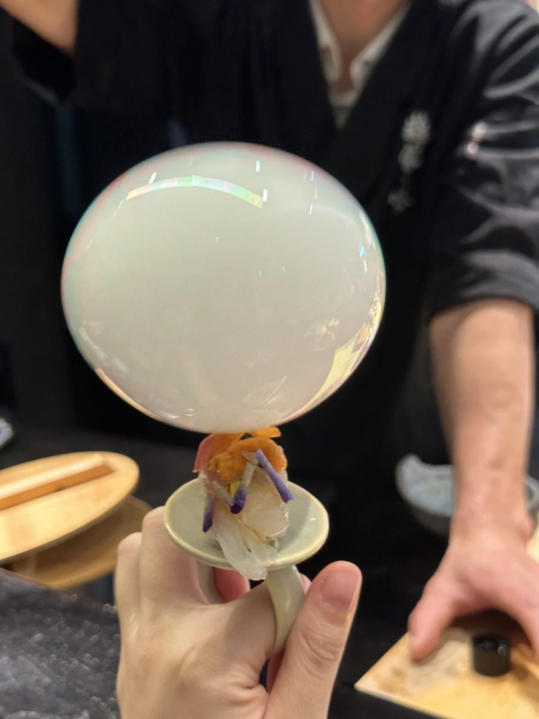 巴掌大的生蚝加了醋做冻、和甜虾刺身