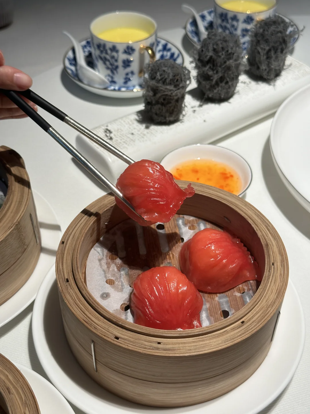 炳胜虾饺皇 shrimp dumplings ,一笼上桌,晶莹剔透,每一口都是嫩滑的海洋鲜美,回味无穷!😋