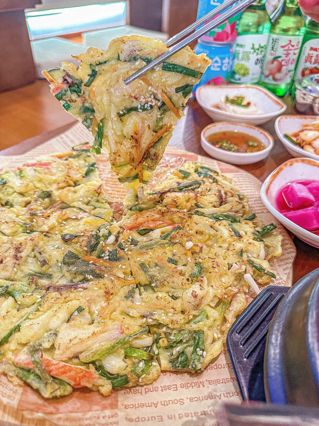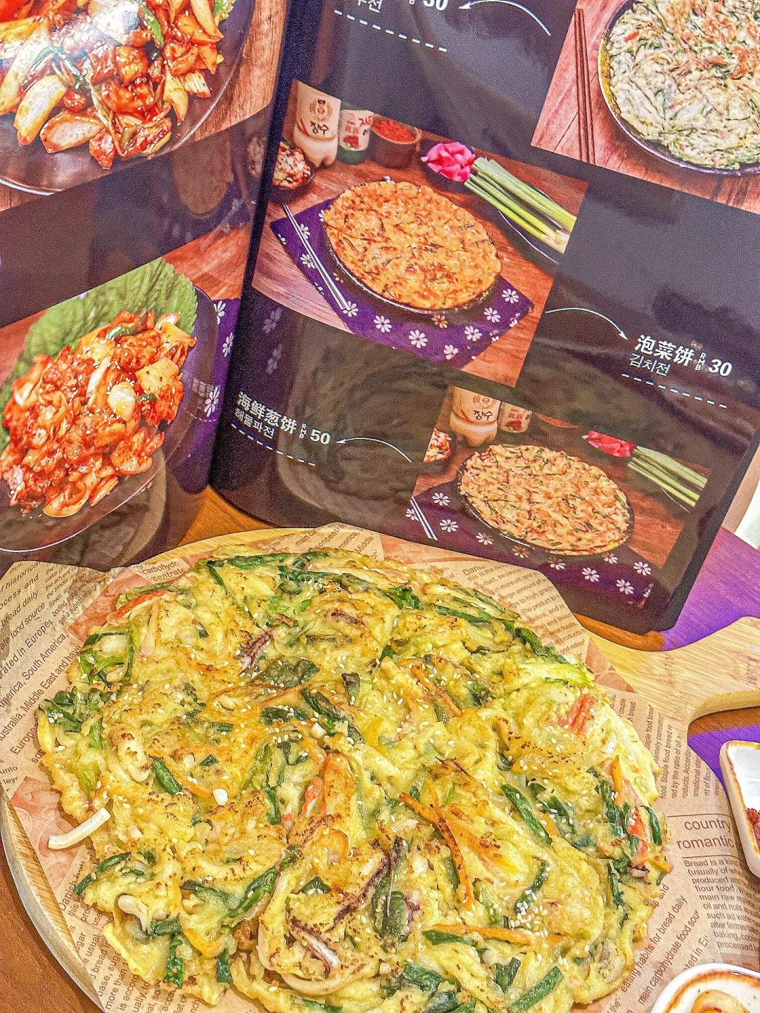 海鲜葱饼一上桌,香味直冲天灵盖!海鲜和葱花的搭配非常协调,外皮酥脆内里鲜嫩多汁,记得趁热吃!