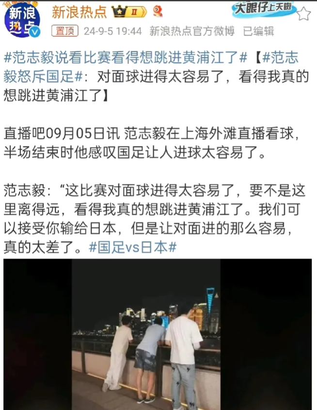 范志毅怒骂国足! 9月5日,国足对战日本时, 踢出了极度丢人的0:7,范志毅看后直接破防,直言这场比赛看的他想跳进黄浦江,并认为国足可以输给日本,但绝对不是这样容易的输,真的太差劲了。
