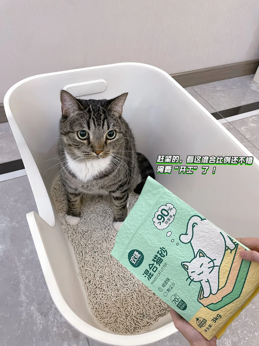 欢捷豆腐混合猫砂,这款是按黄金比例混合,刚送到饼就等不及“开工”了,结团又快又紧实,很能满足饼饼这种喜欢马上“视察成果”的猪咪[doge],这种砂感觉就蛮适合新手养猫人的~