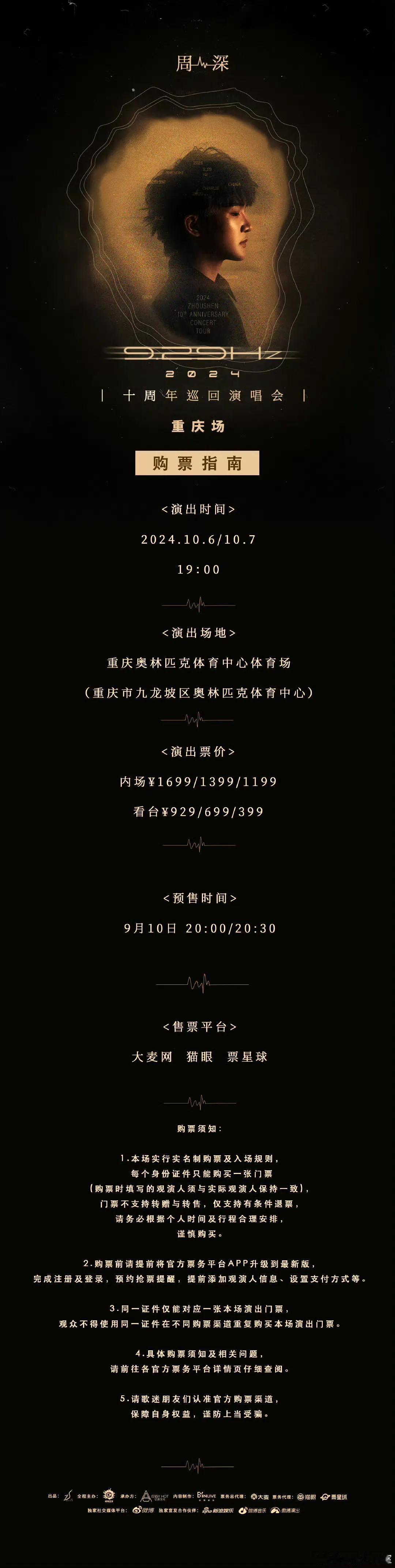 周深演唱会最新资讯已送达[送心][送心] 首先是周深重庆演唱会官宣10月6日、7日晚7点,将在重庆奥林匹克体育中心体育场举行,预售时间是9月10日(周二)20:00/20:30[灵光一闪][灵光一闪] 再者是沈阳演唱会即将来临,9月7日晚7点半,和深深在沈阳奥林匹克体育中心体育场相见,要注意自身出行安全哦[送自己一朵花][送自己一朵花][送自己一朵花] #寻找热爱表达的你#