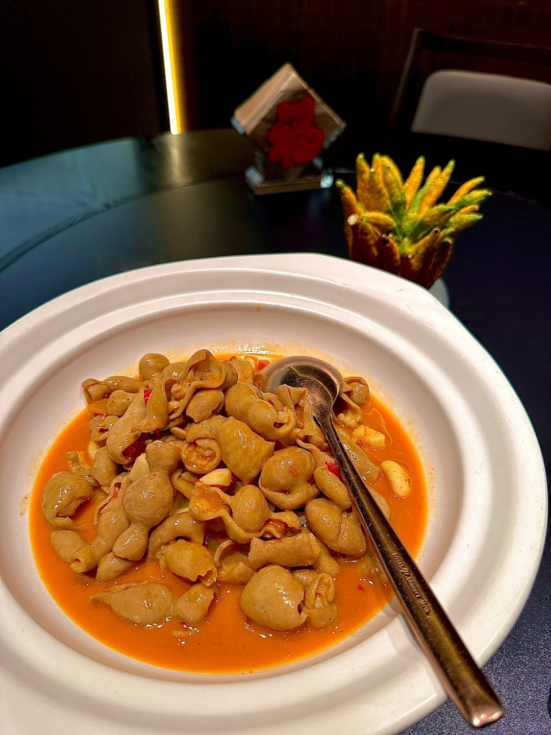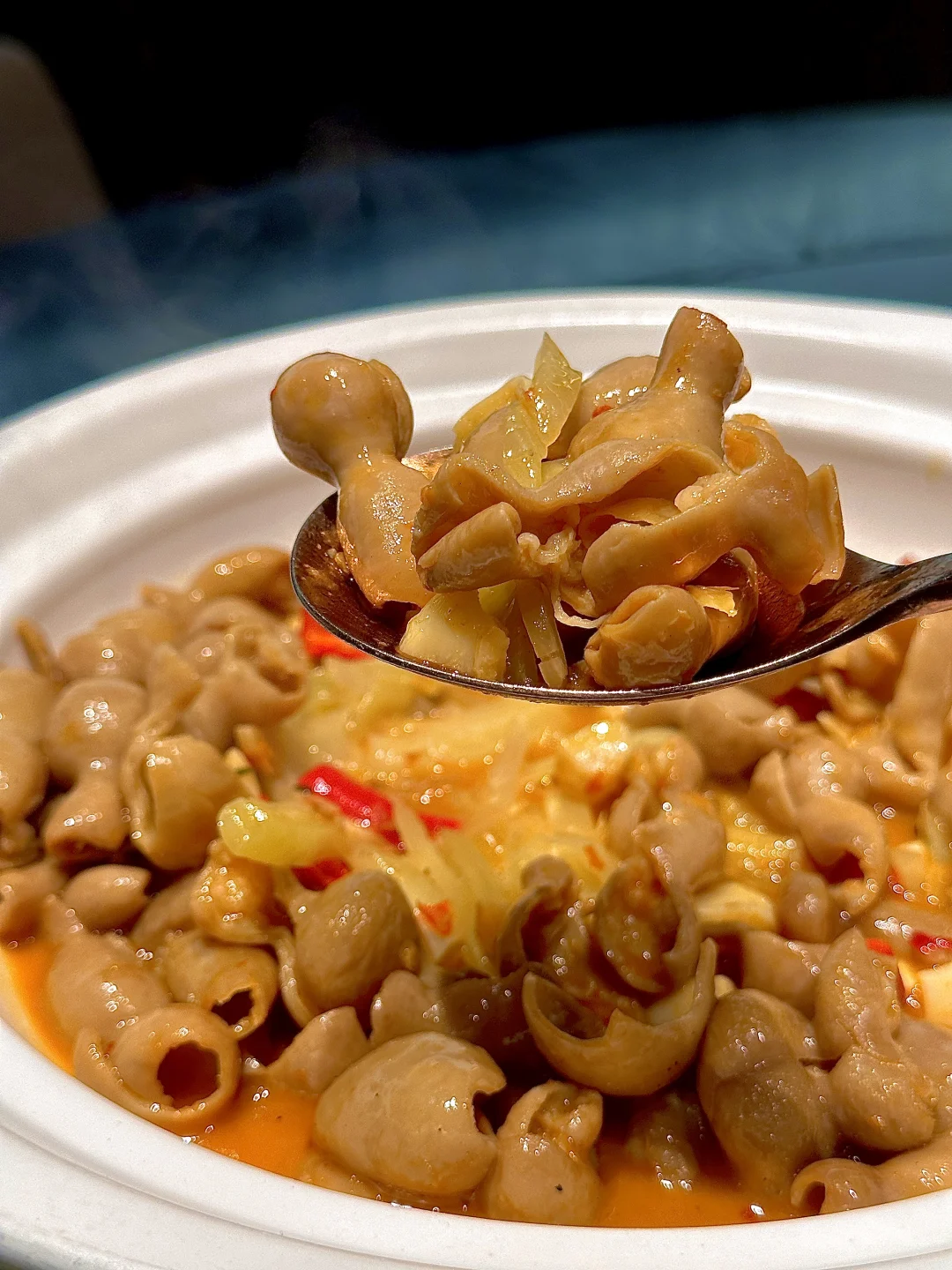 砂锅肥肠:热辣上桌,与酸笋的搭配,酸、香、辣交织在一起,肥肠处理干净,石锅慢炖更入味!