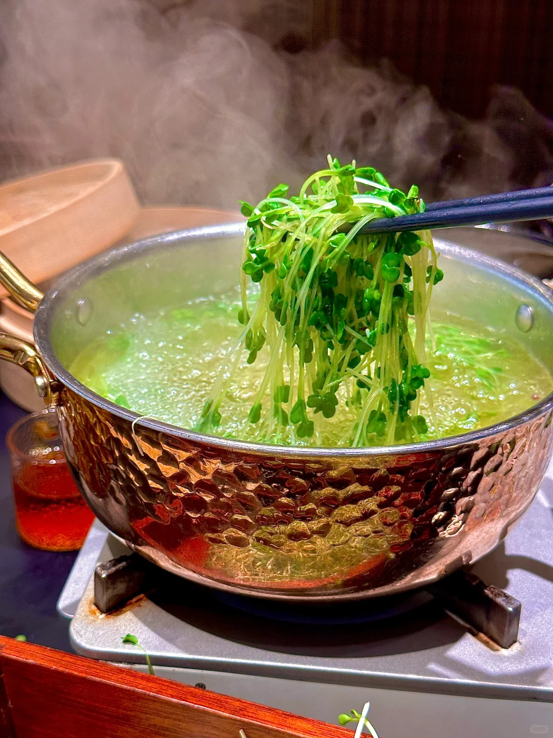 鸡汤萝卜苗:清新鲜美,为这顿盛宴添上一抹温柔,清爽解腻,平衡口感!