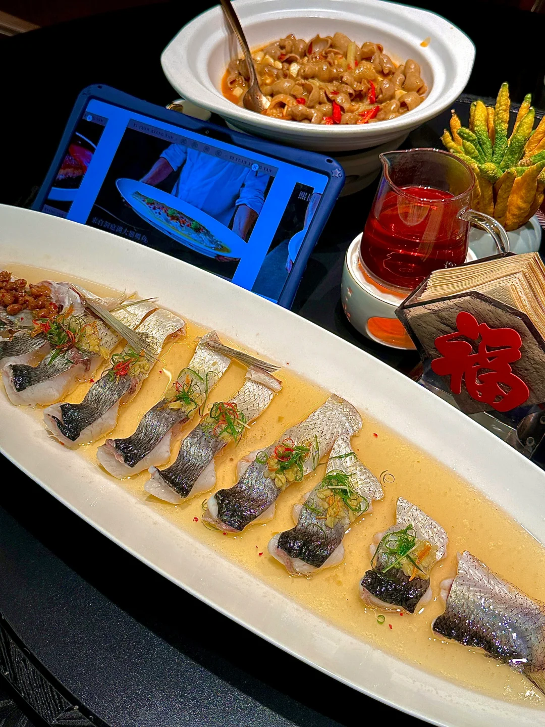 豆豉蒸大翘嘴鱼:超震撼接近一米尺寸,鱼肉鲜美滑嫩,一上桌就惊艳四座🐟。搭配浓郁的豆豉酱~是店家招牌没错了!