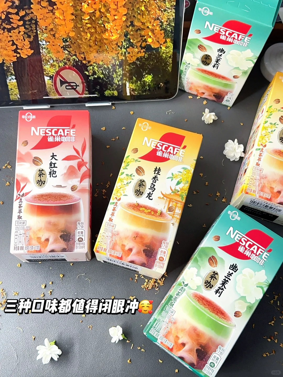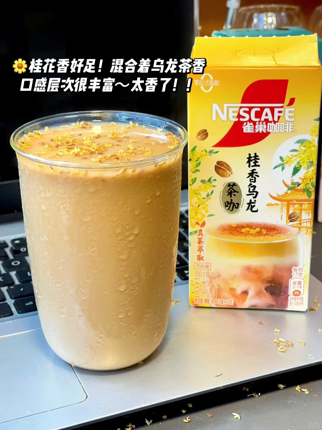 卧卧卧..…还有谁没喝过雀巢茶咖? 我的老天奶![哭惹R]尊嘟好好喝啊!!太绝了! 🌼桂花香夹杂着奶香和咖啡香,味蕾好满足! 秋天桂花飘香的时候就喜欢泡一杯~ 别提多治愈啦!咖啡店再也赚不到我的钱 - [大笑R]真茶萃取+醇香咖啡豆+进口奶粉 又奶又清爽!帮你们看了下热量对咱也很友好! 不到一个苹果的热量..…0植脂末0反式脂肪酸 雀巢这次真的用心了!三个味道都替你们试过了! 有一说一茉莉幽兰、大红袍和桂花乌龙全都不踩雷~ 茶+咖的组合醒神翻倍!太适合我这种早八人了!