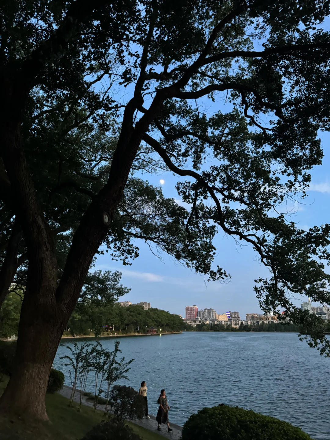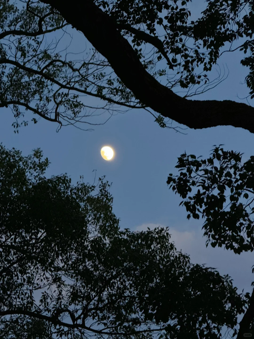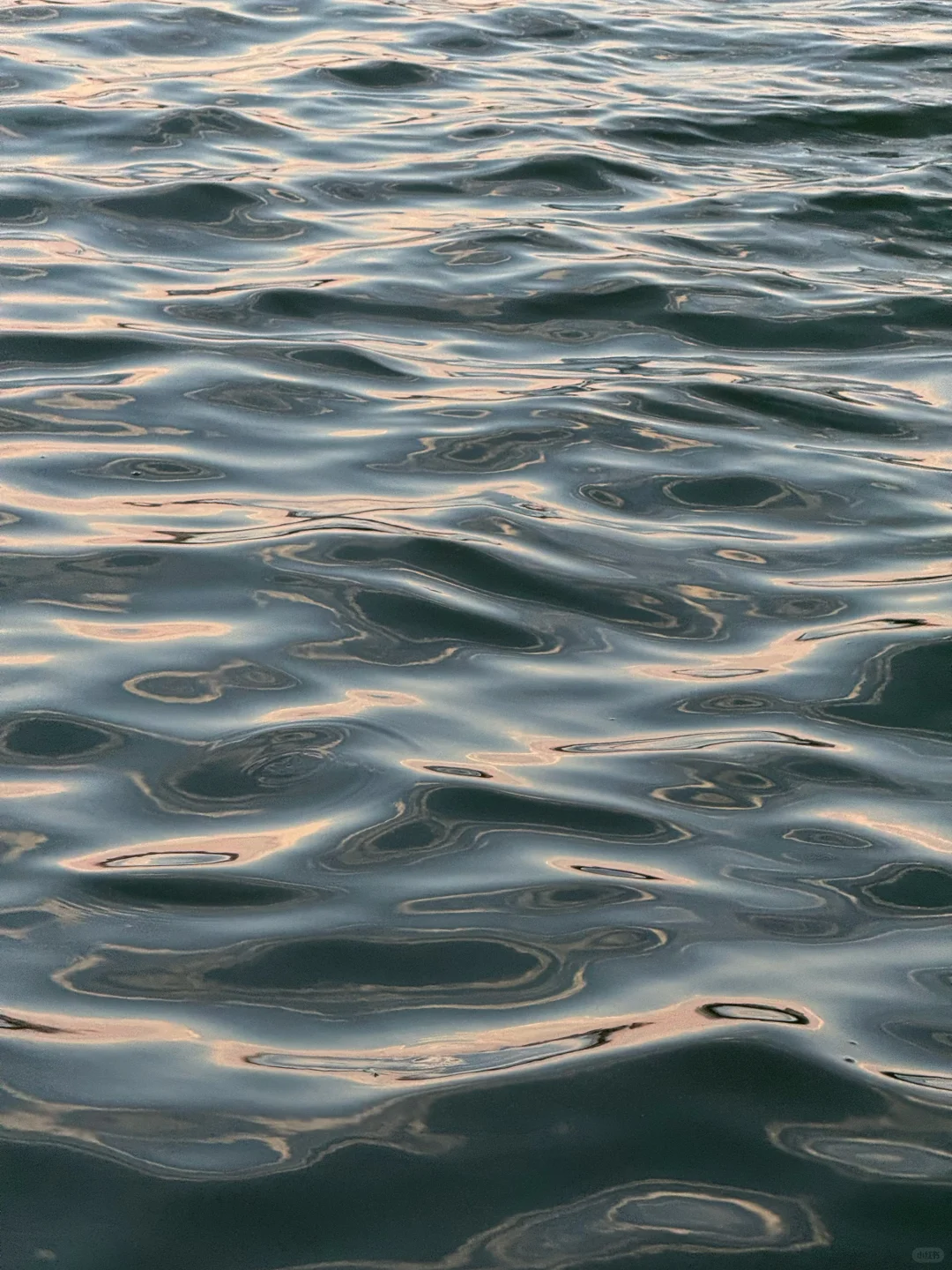 夜幕低垂,水面波光粼粼 好治愈的画面