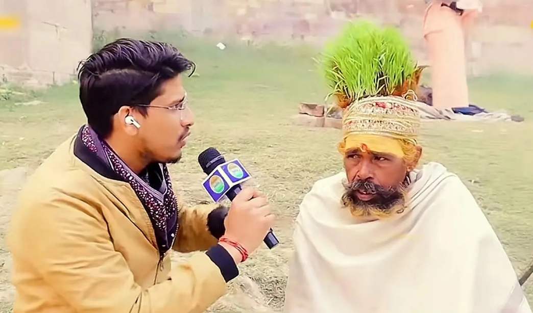在这个苦行僧因为在头上种植水稻火了以后,有记者就来采访他,问他为什么要在头上种水稻?