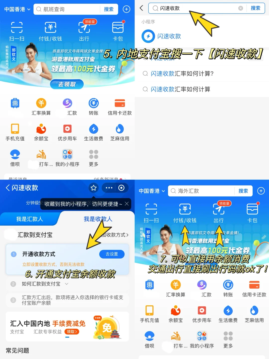 5⃣ 打开内地支付宝,搜索“闪速收款“然后开通余额收款