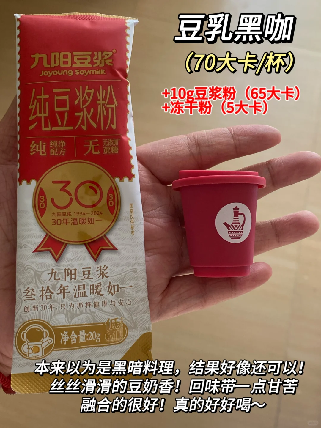 本来以为是黑暗料理,结果喝起来是丝滑的豆奶香,回味带一点甘苦!融合的很好!