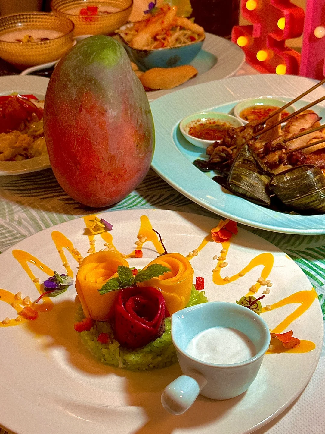 重头戏来了,泰式芒果糯米蛋糕上场,金黄的芒果片如微笑的太阳,糯米团子软糯Q弹,就像我的心情,甜到心底!Dont forget to make a 🤞,愿望说出来就不灵了哦~✨