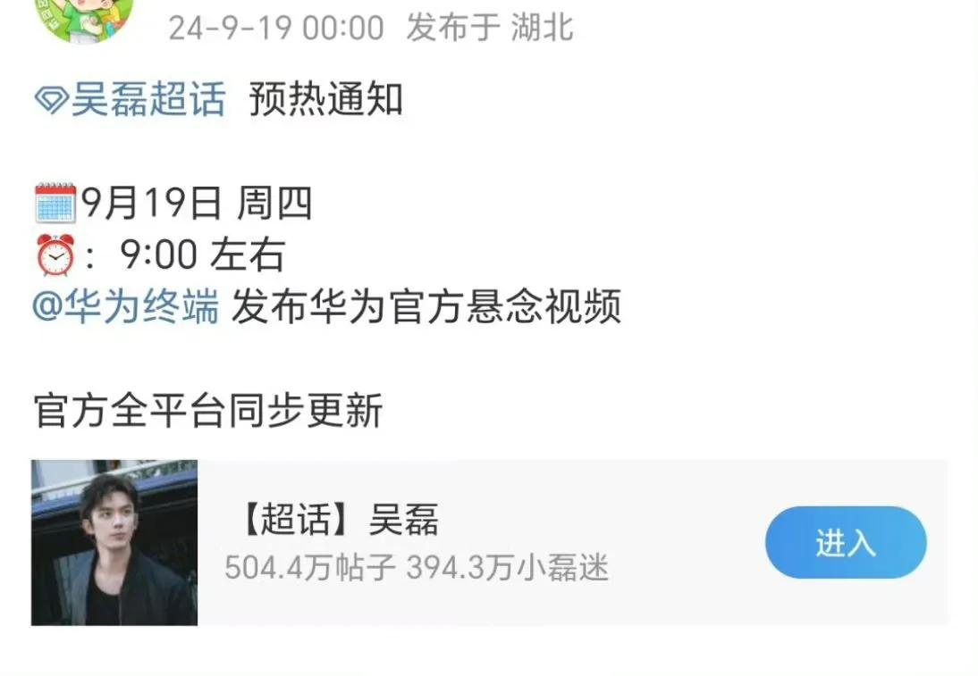 吴磊华为正式预热,“自我探索,从不设限;荧幕内外,多面闪耀。新朋友,即将揭晓!”这是吴磊本月的第3个商务,商业价值杠杠的[奋斗][奋斗] #秋日生活打卡季#