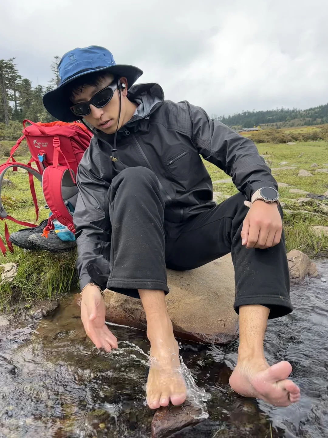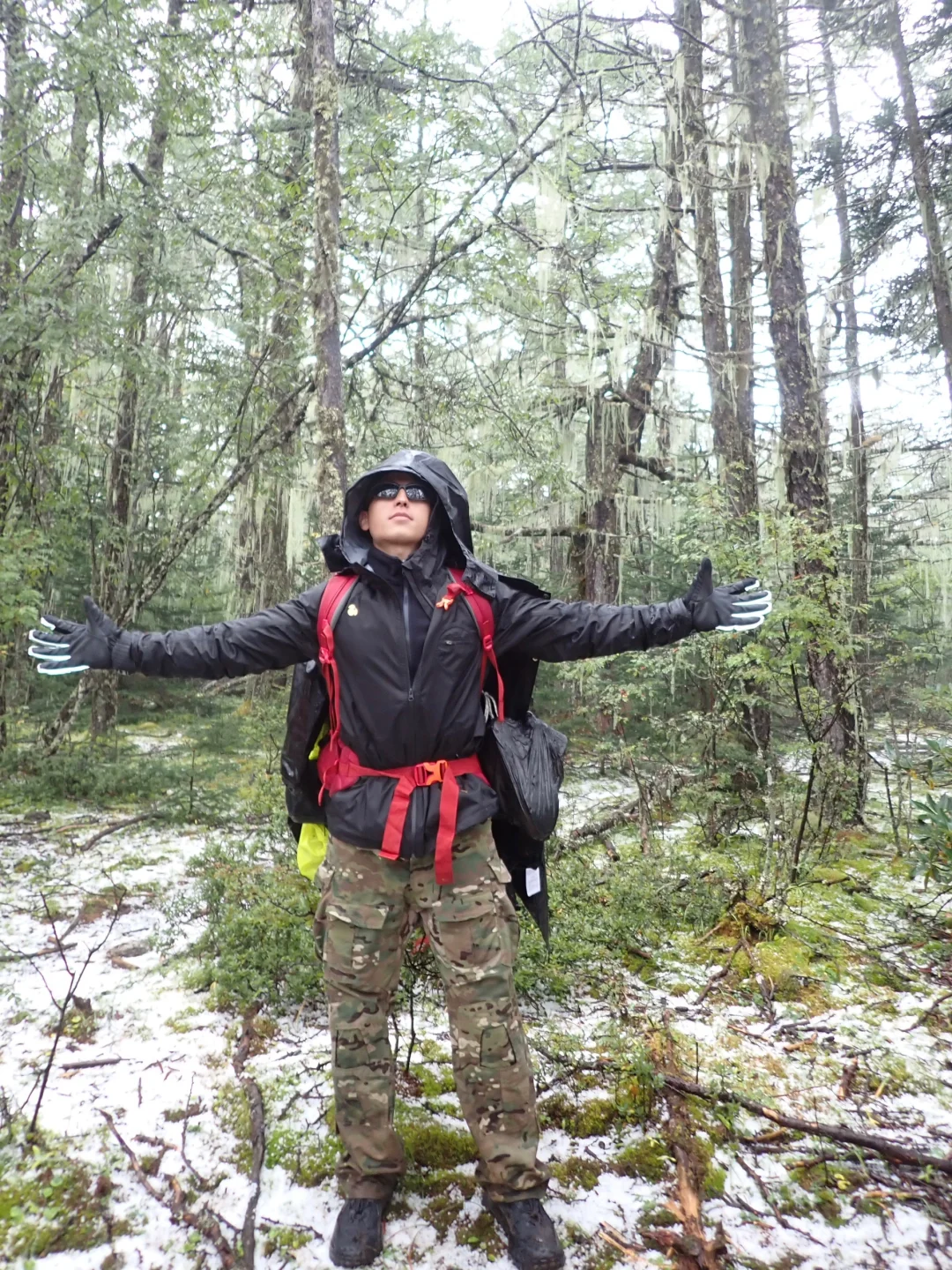 这次重装30Kg徒步阿布吉措准备上去三天两晚徒步,走一半突遇极端天气,前面还是晴空万里,马上就下了豆子大的冰雹后面持续暴雨,面对这种天气身体温度下降很快,一会手就麻木了,团队只能下撤!