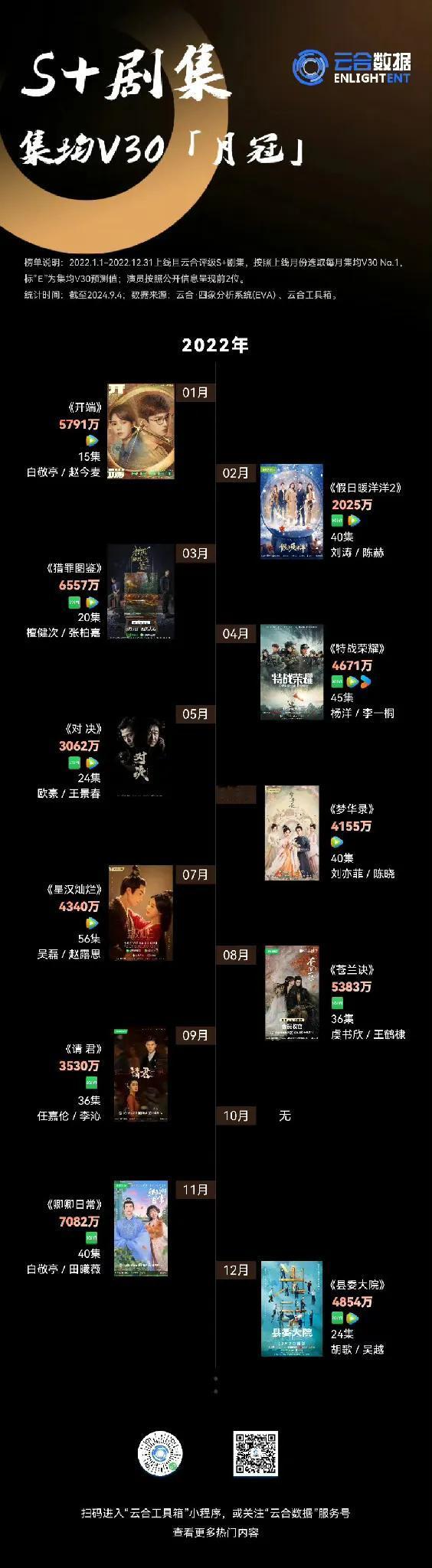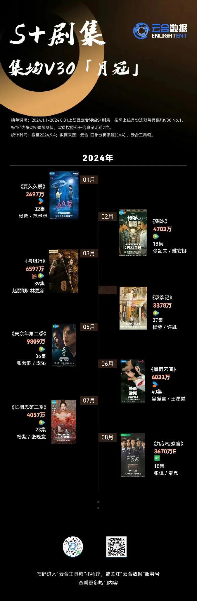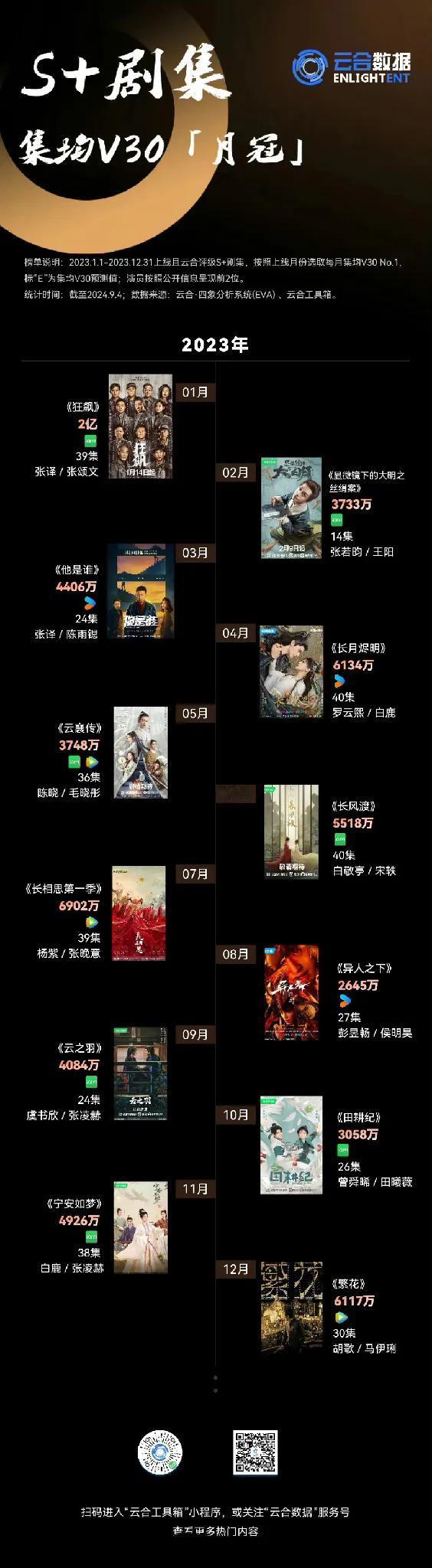 云合数据统计的2022-2024年S+剧集总榜、各年度月榜有! 总榜排名《狂飙》位居第一,第二到第十分别是《庆余年第二季》《卿卿日常》《长相思第一季》《与凤行》《猎罪图鉴》《长月烬明》《繁花》《墨雨云间》《开端》[小鼓掌][小鼓掌][小鼓掌] #记录我的9月生活#