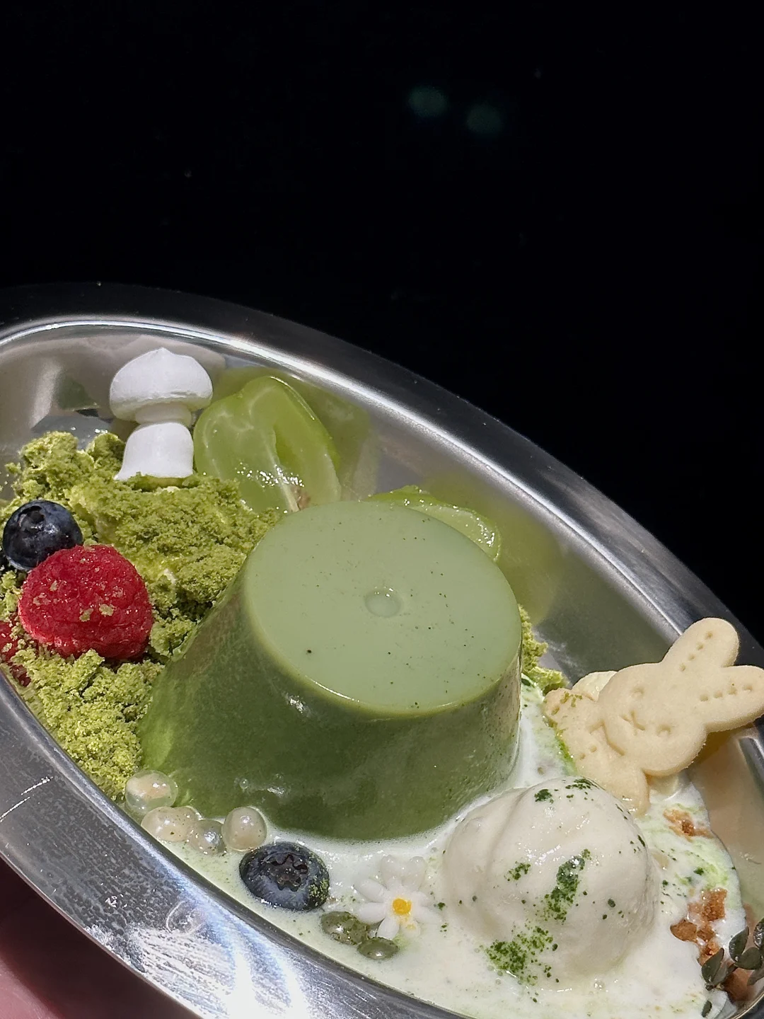 外观精致得让人不忍下口,就像一艘装满宝藏的小船。抹茶奶冻口感细腻顺滑,浓郁的抹茶味与奶香完美融合,甜而不腻!