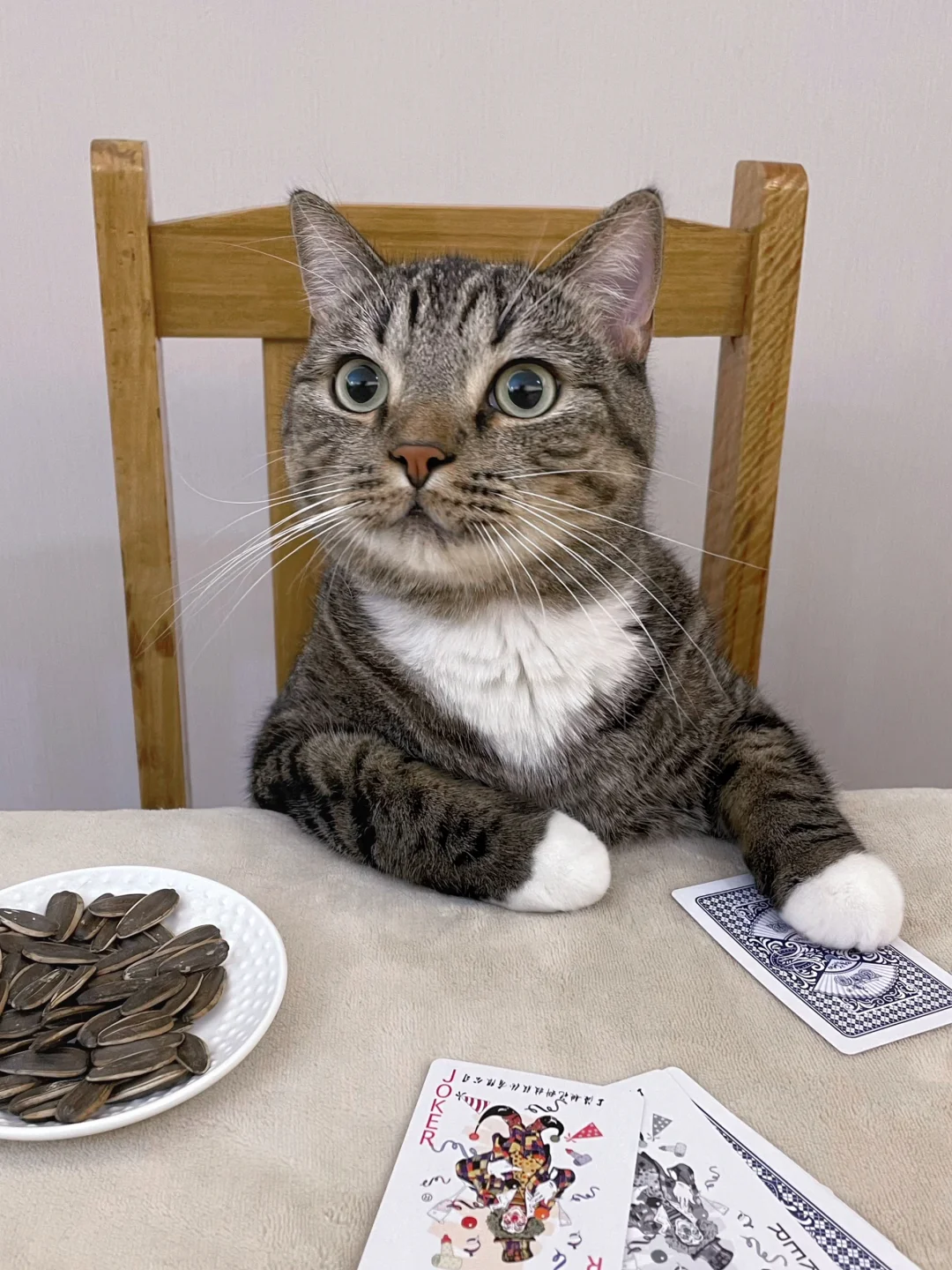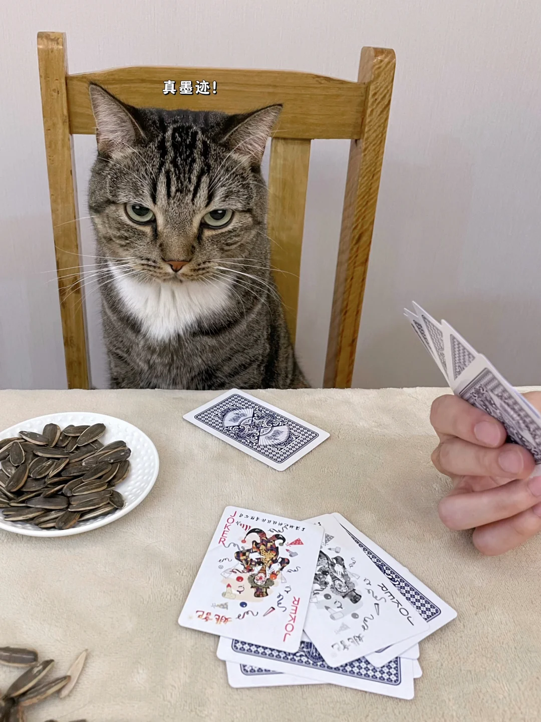 饼:“我可就剩一张咯,谁输谁买罐罐!”