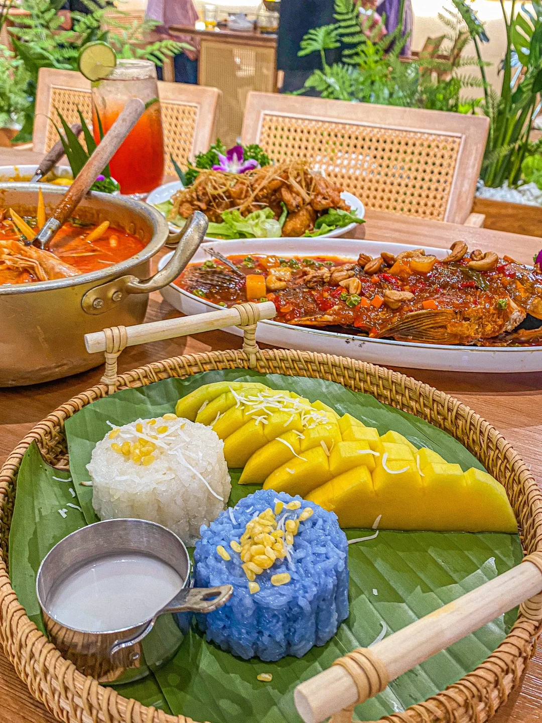 重点来了,他们家的双人套餐分量十足,性价比超高!冬阴功汤一上桌,那个酸辣味儿就让人食欲大开,简直是夏日里的最佳开胃菜!再来一份芒果糯米饭,甜而不腻,每一口都是满满的幸福感~ 🍓