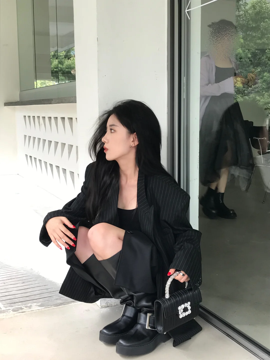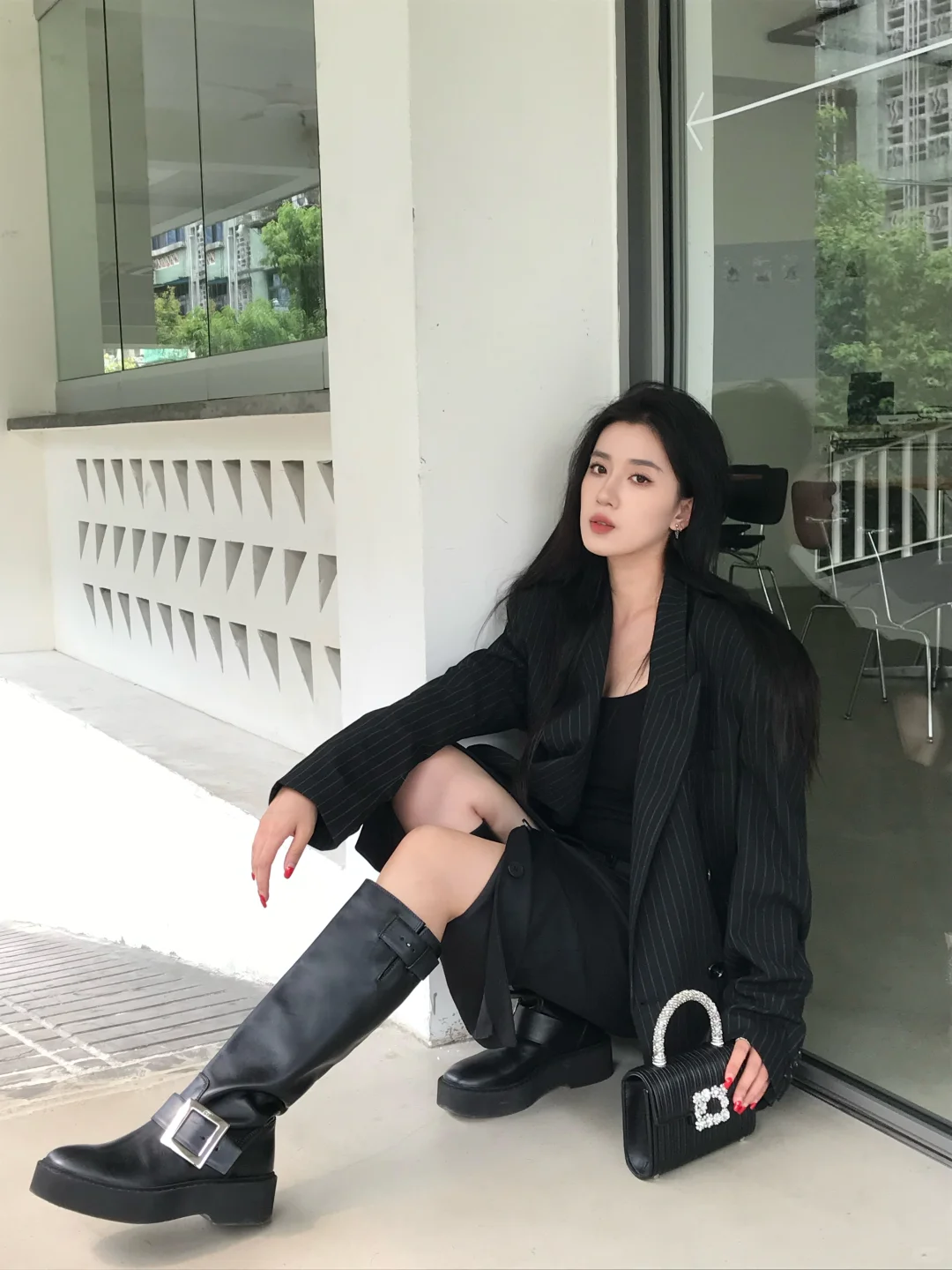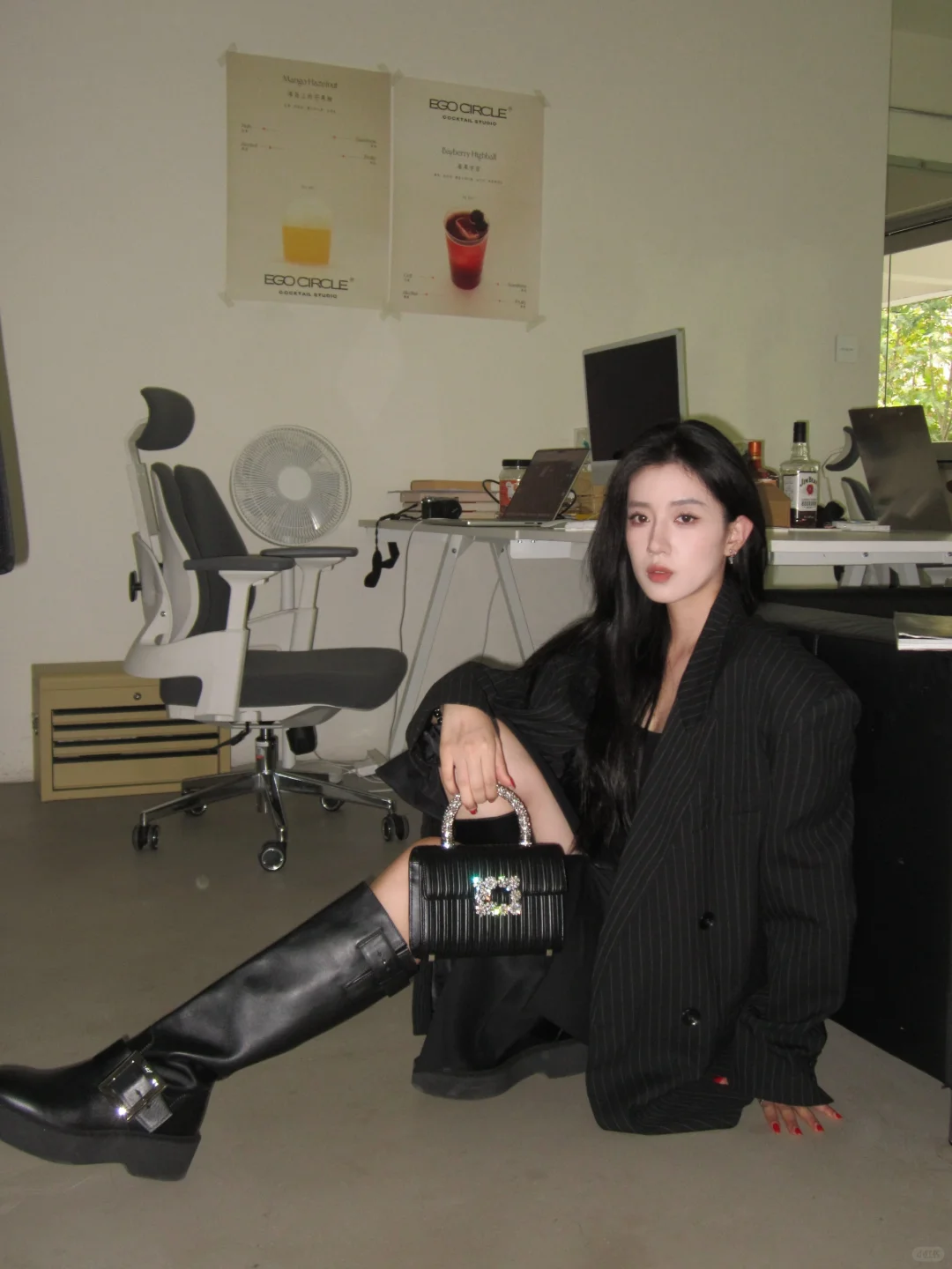 今天选择的风格依旧是我的舒适区 西装配长靴