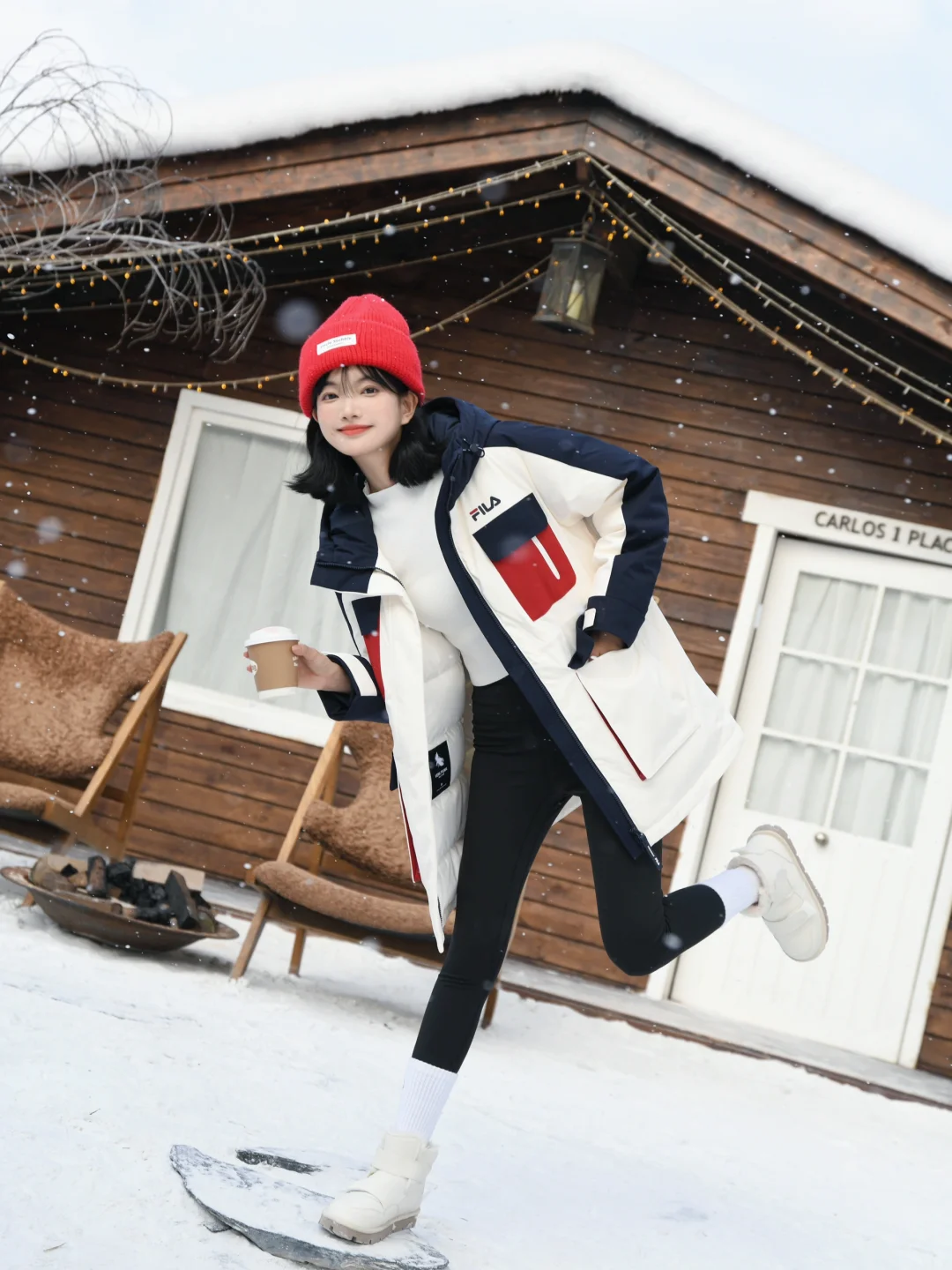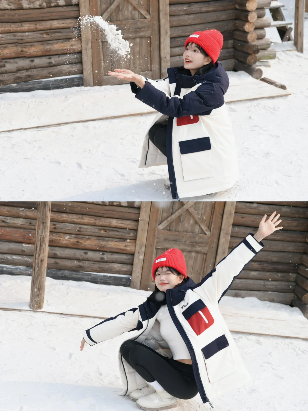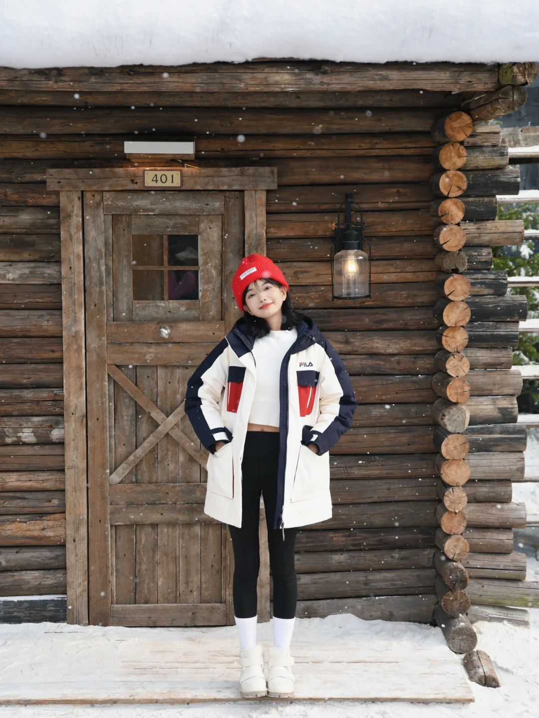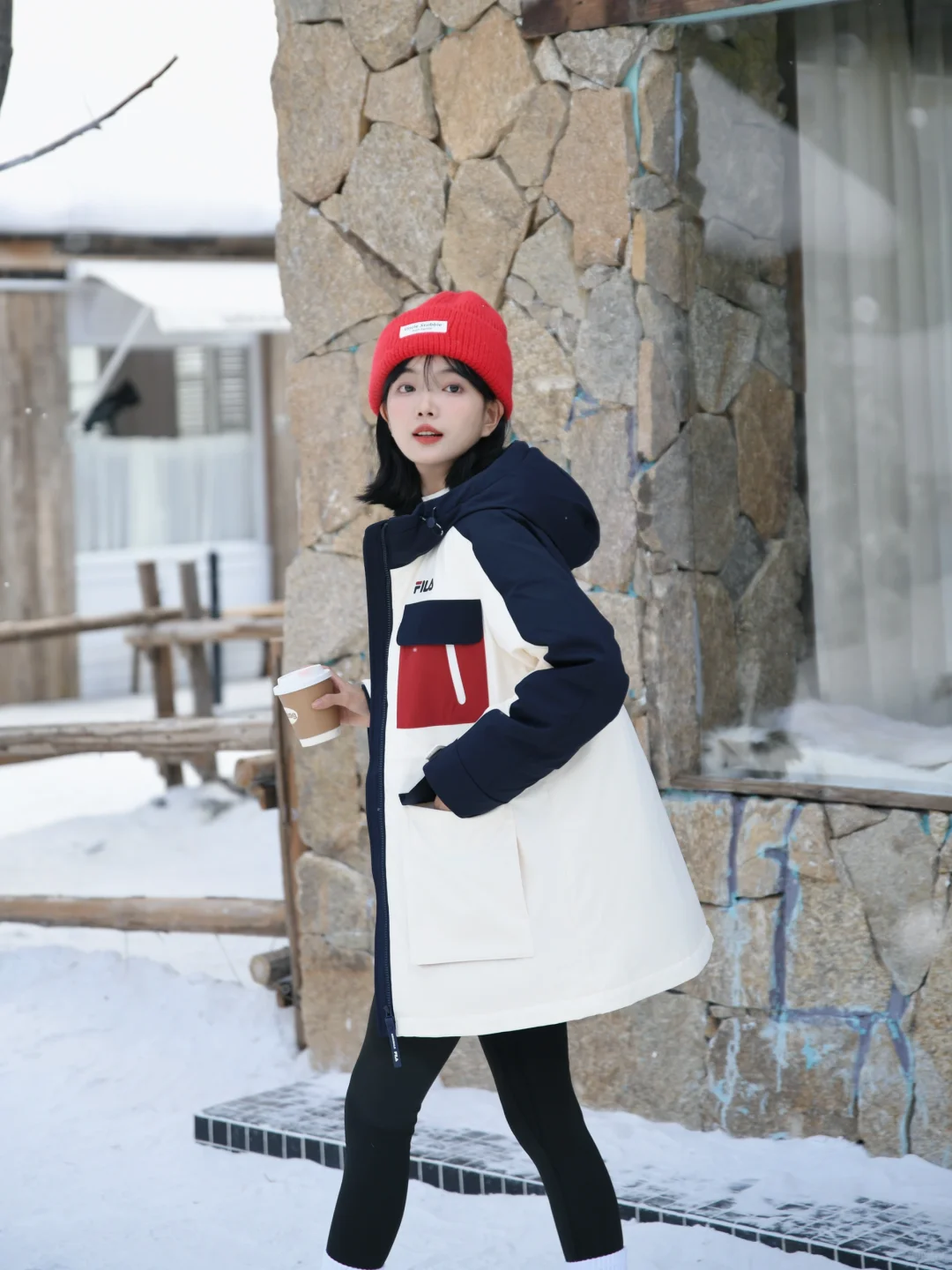 再套上FILA派克羽绒服 长度刚刚好