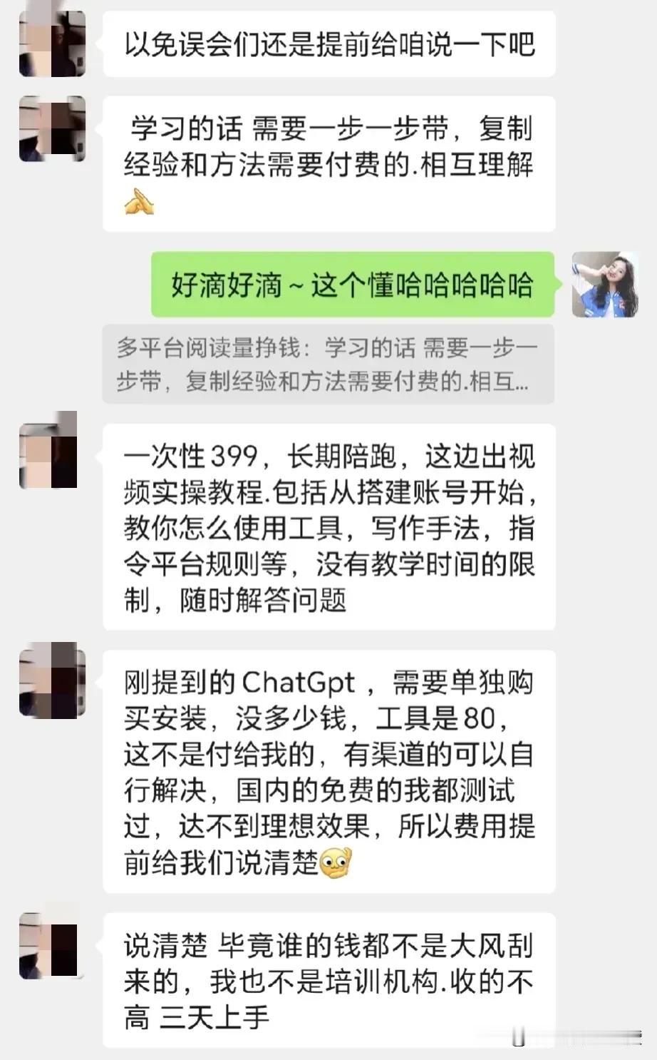 “399元买个教训,大学生线上副业梦碎,这锅该谁背?” 大学生小张(化名),可能也是许多大学生的心声。网络上各种副业培训班多如牛毛,号称“三天上手”“轻松月入过万”。小张被这些美丽的谎言吸引,决定试试看。 每月生活费1500块左右的小张,为了减轻家里负担,想找份副业。正好看到一家头条写作班,宣传零基础也能变高手。小张心动,咬咬牙,把省下的399块钱交了上去。 起初,小张挺兴奋,每天按课程安排认真听讲、做作业。很快,他发现不对劲。课程内容越来越水,老师教的东西也越来越离谱,用AI工具改写文章、模仿热门话题博眼球。小张心里直犯嘀咕:“这不是作弊吗?” 说三天上手回本,半个月过去,小张没有学到有用技巧,反而被灌输了一大堆功利思想。小张开始怀疑,自己是不是被骗了?399元对他来说,不是小数目。 小张遇到的情况并非个例。在线教育市场火热,各种培训课程层出不穷,其中不乏夸大其词、误导学员的黑心机构。他们利用年轻人急于求成的心态,设置陷阱,让人防不胜防。 保持清醒的头脑,不要轻易相信那些过于美好的承诺。选择正规渠道的培训课程,比如官方认证平台或口碑良好教育机构。最重要的是,坚持自己的原则,不要为了短期利益而牺牲长远发展。 小张的故事告诉我们,追求梦想的路上难免会遇到坑,只要我们保持警惕、勇敢前行,总能找到属于自己的那片天空。如果也有过类似遭遇,或者对这个问题有什么看法,欢迎评论区留言讨论。别忘了给这篇文章点个赞,让更多人看到,一起警惕这些陷阱。 希望大家都能擦亮双眼,找到真正适合自己发展的道路。加油,小伙伴们! 自媒体新人