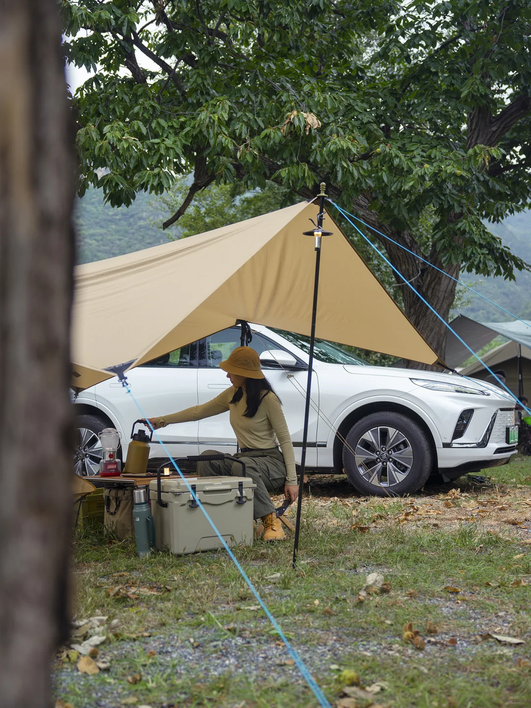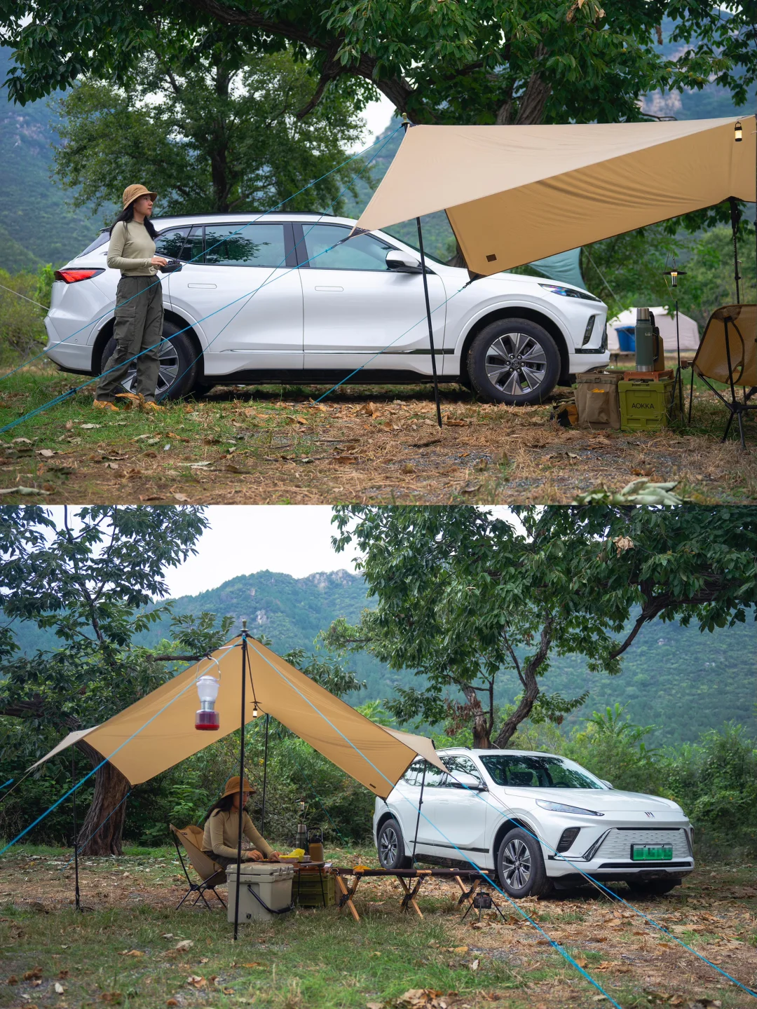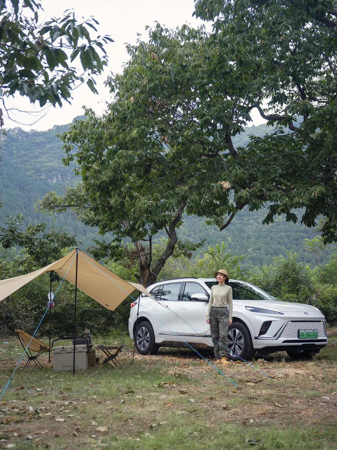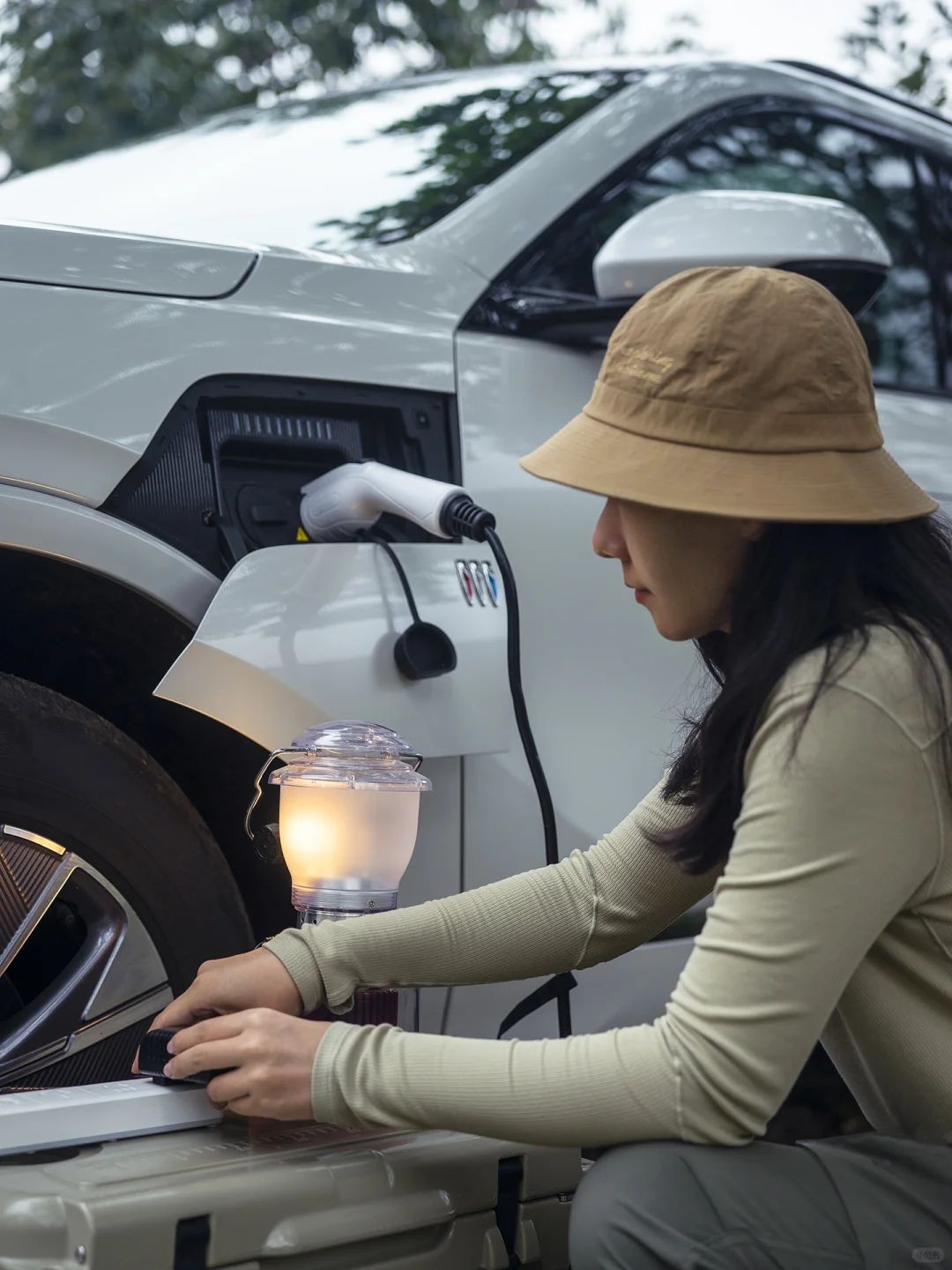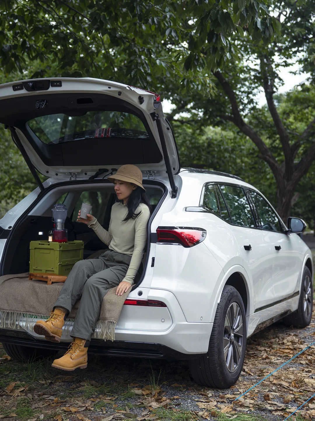 E5的外放电功能对户外露营简直太友好了,解决户外用电焦虑,给足露营人满满的安全感。一些提升幸福感的户外电器比如车载冰箱、电热小火锅,都可以安排上了。