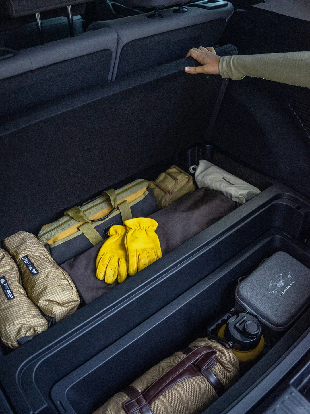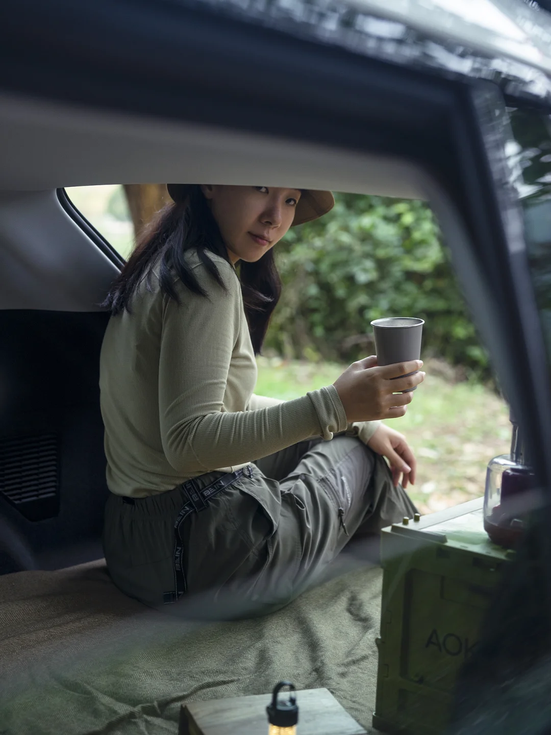 露营以来越来越喜欢空间大的车子,E5的后备箱空间还是很优秀的,不仅能装载超多户外装备,而且放倒后排座椅,就能拥有移动卧室,不想麻烦就车中泊,收纳箱、小桌子、睡垫都能容纳,睡在车里或是驾驶疲劳了想休息一下都很适合,方便随时随地出发。