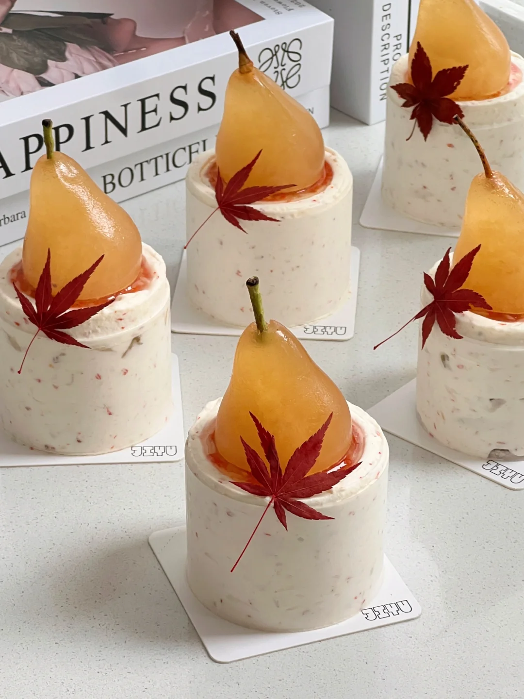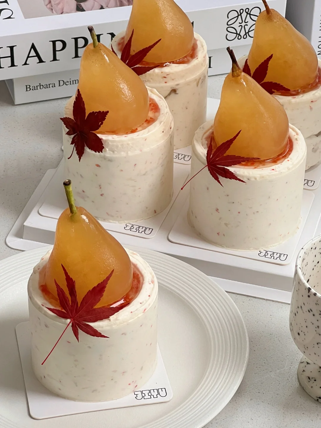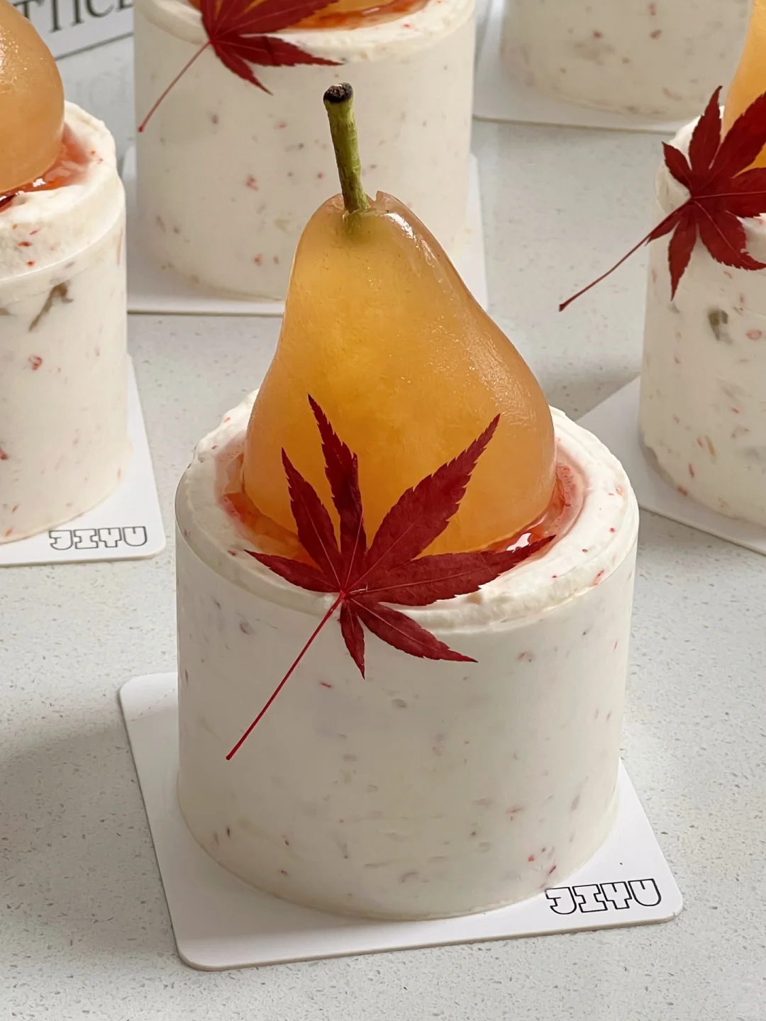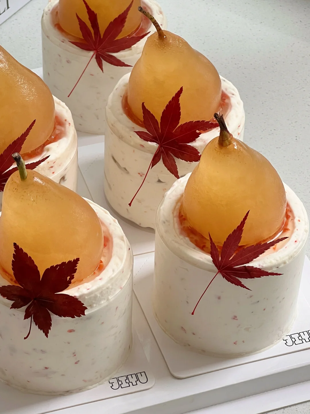成都蛋糕·几鱼蛋糕课新口味🍁桂花酒酿秋梨 四季特调口味蛋糕 秋冬新品🍁桂花酒酿秋梨蛋糕 奶香浓郁还有酒酿和桂花的香甜 熬洋梨酱用了黄色干桂花颜值更高耶 梨子冻的装饰太有风格 枫叶叶片的装饰让整体造型更加有氛围感啦 内外在的惊艳感一个小三寸都不够吃~