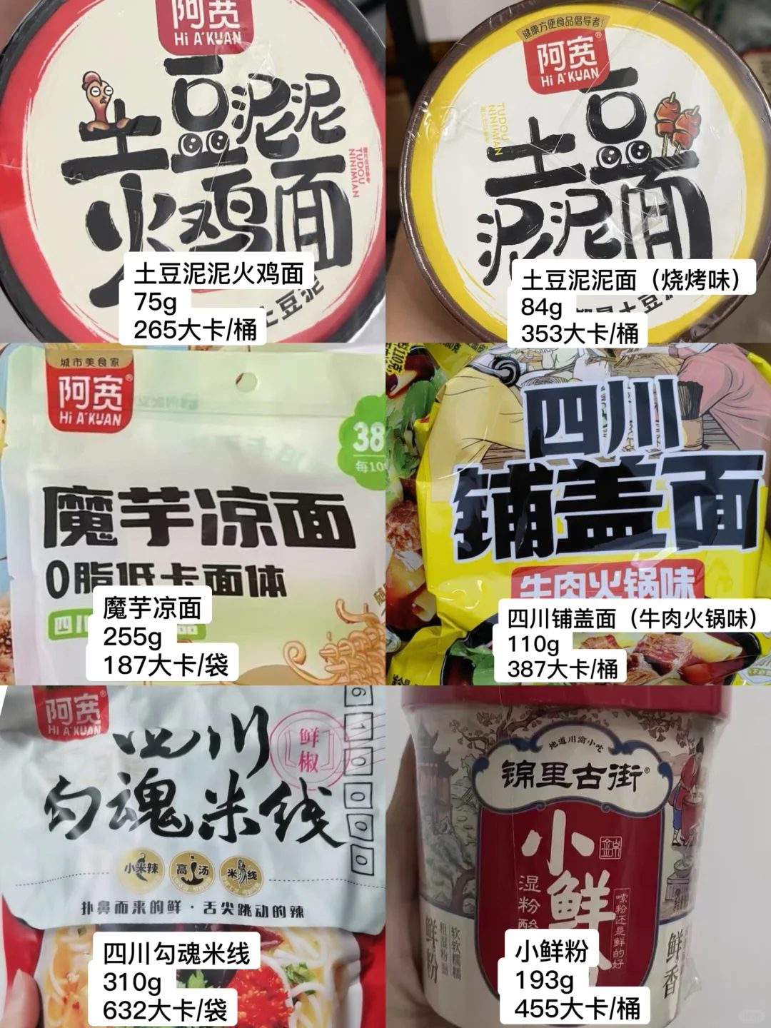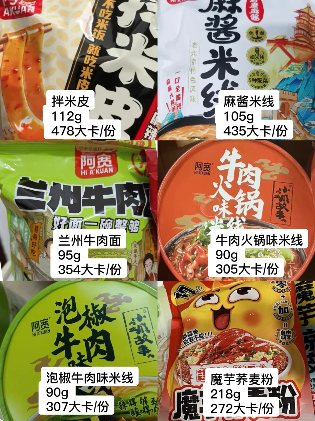 ✅像非油炸或者魔芋类的热量就会低很多,想吃大袋解馋的姐妹米粉包可以放1/2,然后加点蔬菜就差不多500大卡左右~