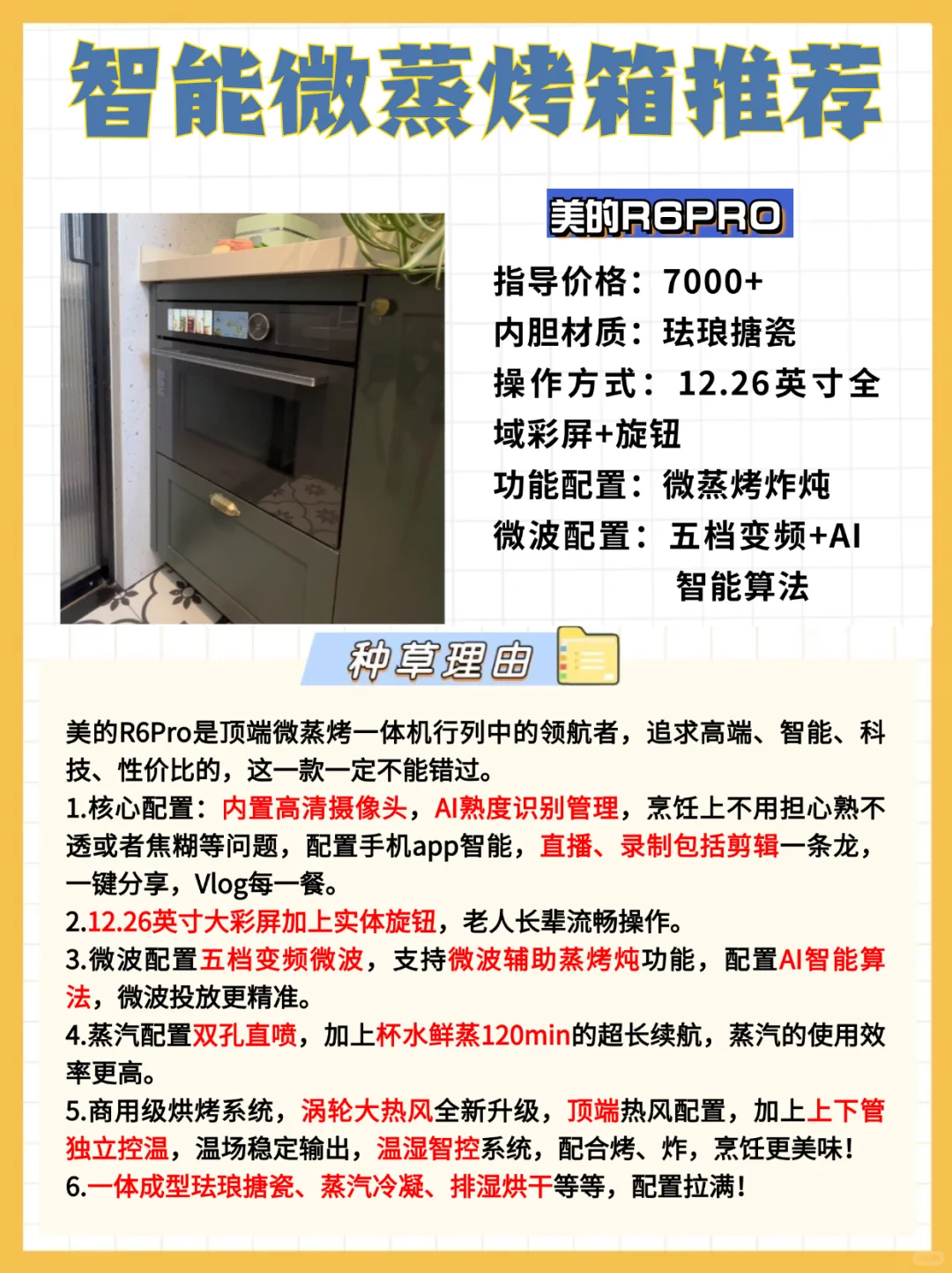 美的R6Pro是顶端微蒸烤一体机行列中的领航者,追求高端、智能、科技、性价比的,这一款一定不能错过。