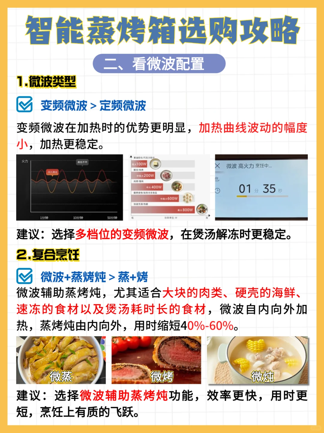 2⃣选择多档位的变频微波和微波辅助蒸烤炖功能,效率更快,用时更短,烹饪上有质的飞跃。