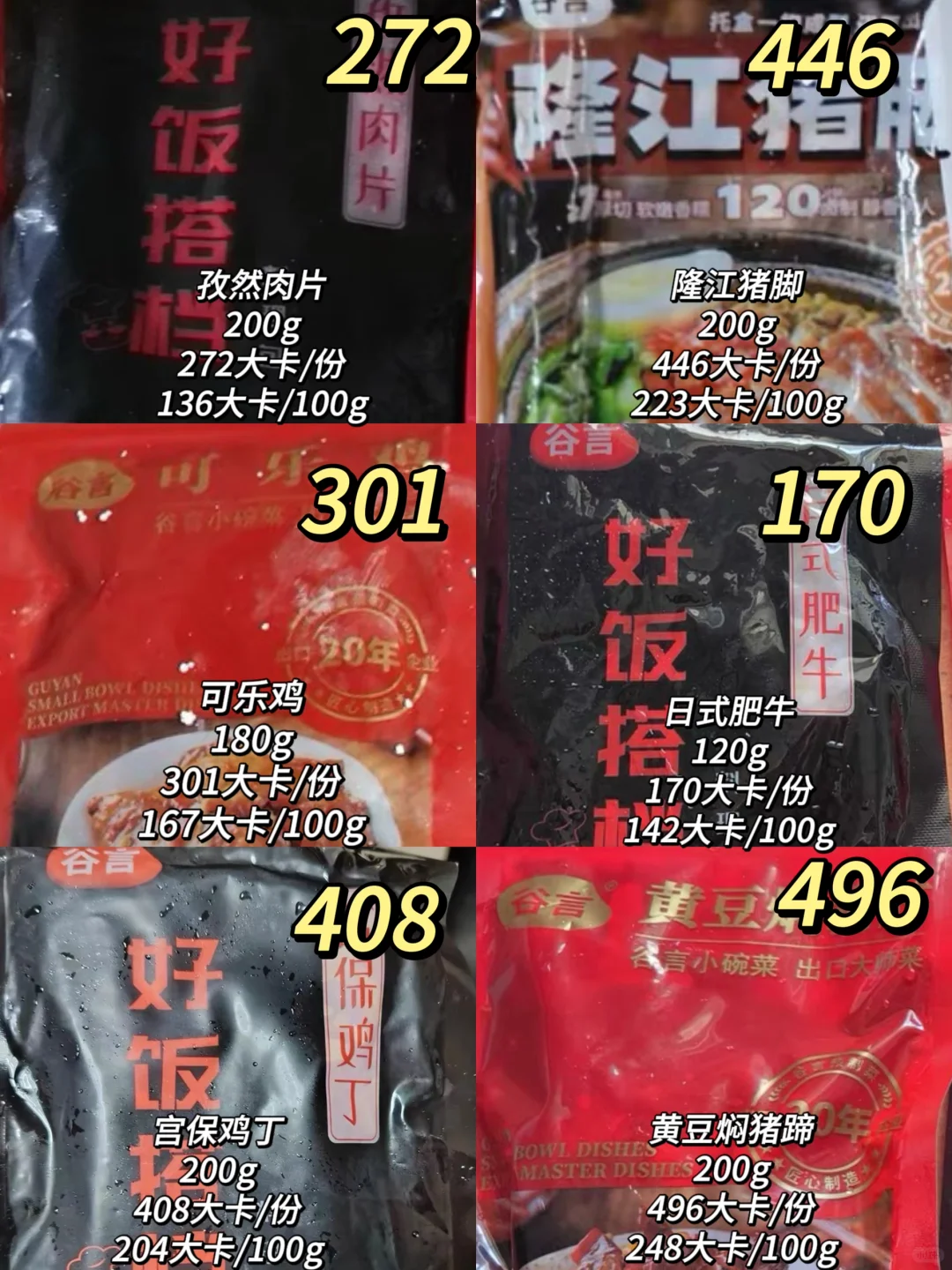 ✅以上像猪肉类的脂肪含量高的热量自然也高,想吃这些菜品的姐妹可以吃个1/2在加一份绿色蔬菜和1/2米饭也能控制在500-600大卡区间~
