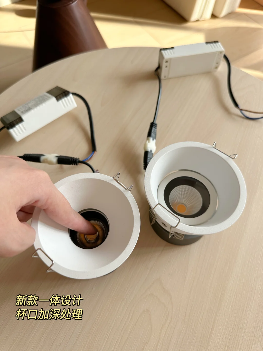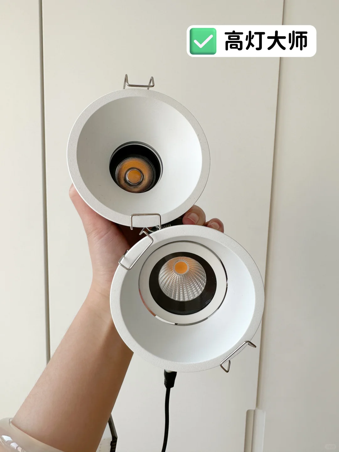 我家用的是这个新款GD324,它有柔光版和0副光版两种光效,可以根据家里的装修风格自由选择。而且它的光束角默认外形36度,但是很贴心的一点就是可以定制透镜24度或透镜15度,真的很方便。除此之外,灯口也做了加深处理,深度防眩,见光不见灯!!