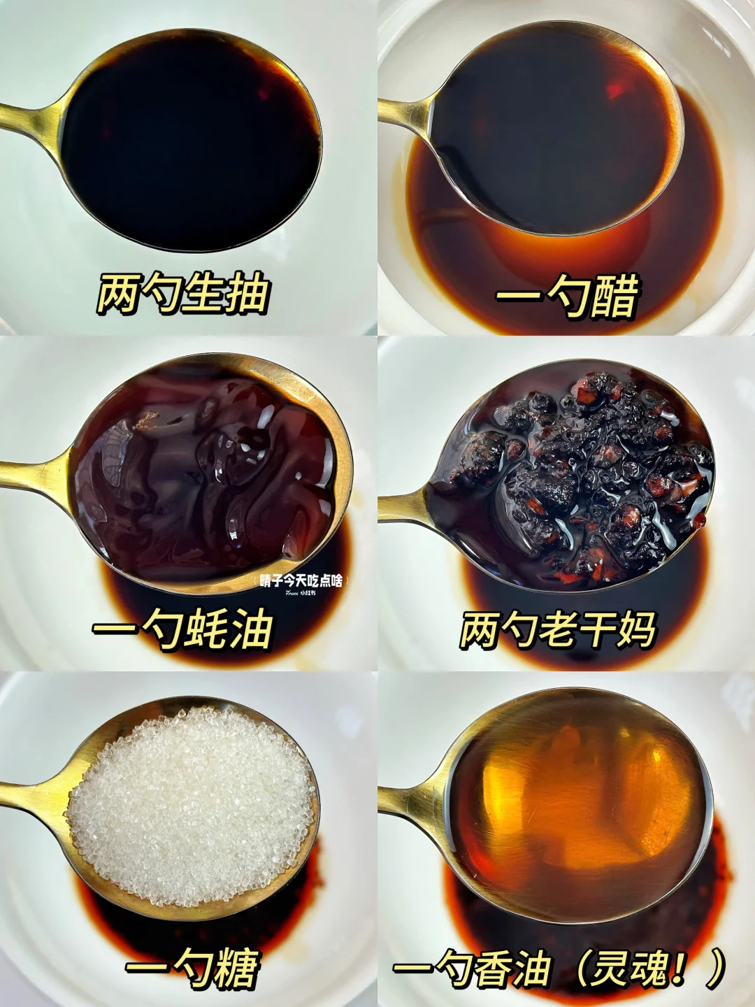 🥣酱料:2勺老干妈,2勺生抽,1勺蚝油,1勺香醋,1点糖,1点香油,拌匀