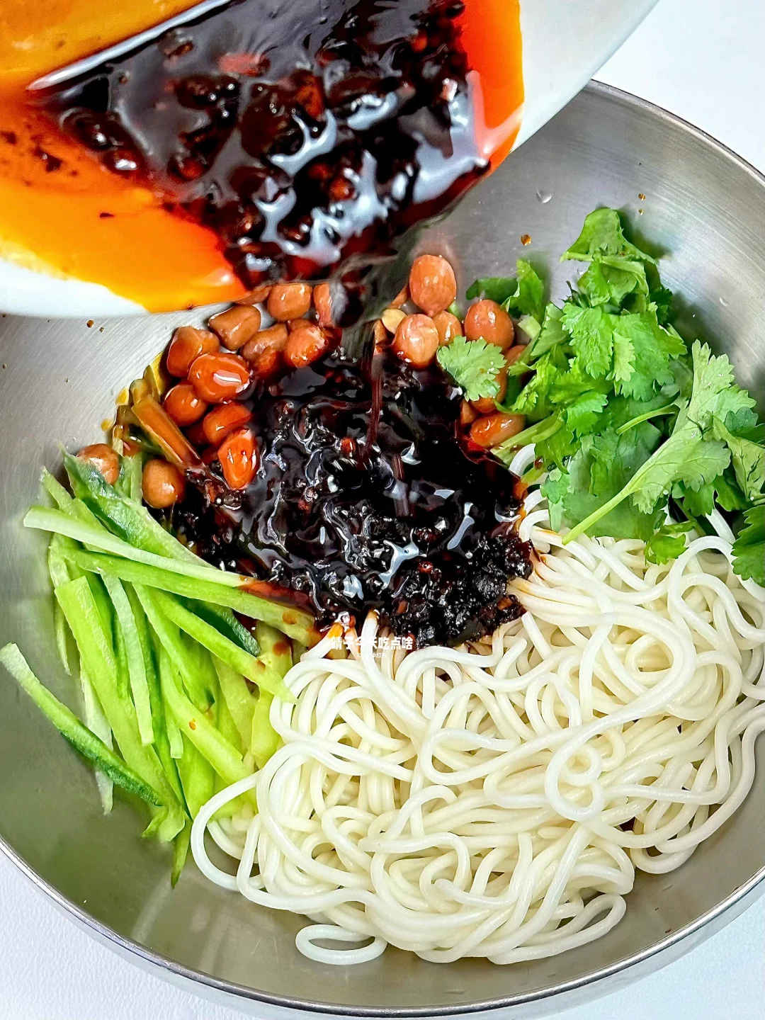 🍳做法:面条煮熟过冷水,淋入酱汁抓匀就可以吃啦!