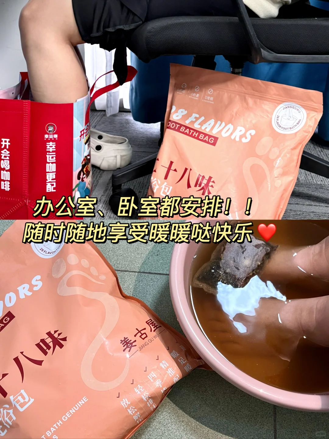每天下班回家洗完澡后来一盆热水,然后放入姜古屋泡脚包,内含28种珍贵精华🌿,诗寒直接秒了!注意‼注意‼,泡脚一定要泡过三阴交,而且这个泡脚包不用开水煮,直接热水泡几分钟就出汤了,汤色很浓郁,这点非常适合我们懒人姐妹了,之后泡个20分钟左右,身上会出很多汗,但其实是人本内的诗气,泡完真的整个身子都感觉轻松不少,这谁还怕诗啊?