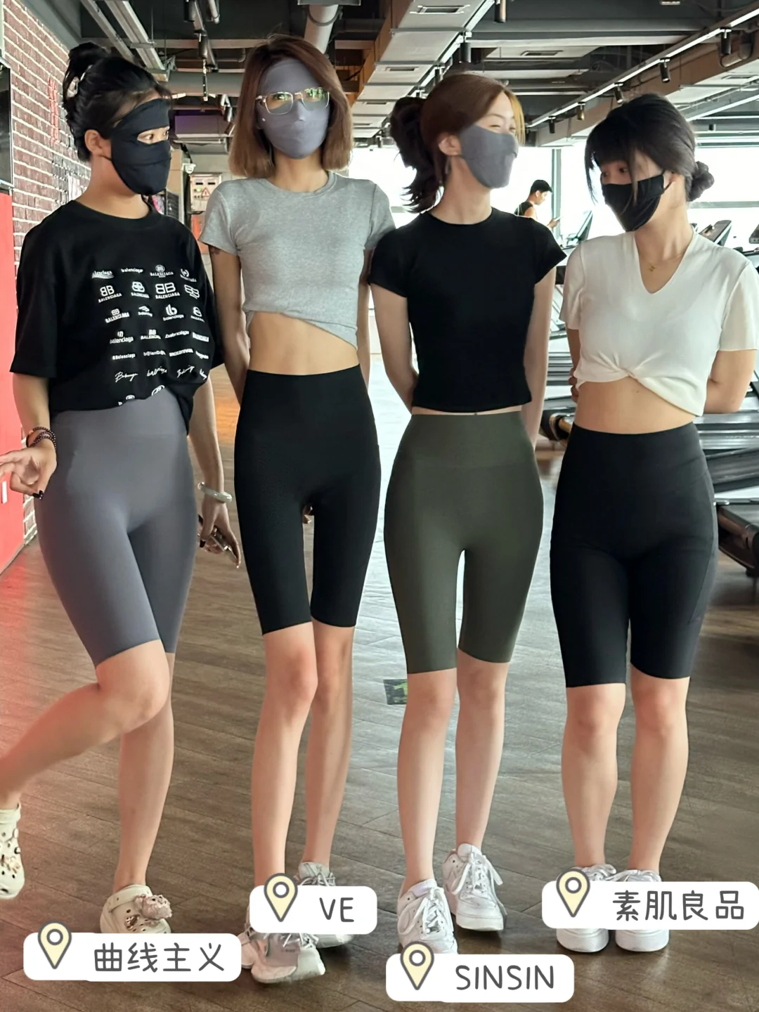 这样搭配还蛮好看到就刚好拉着几个小姐姐给大家分享一下这些热门鲨鱼裤的上身感受和效果
