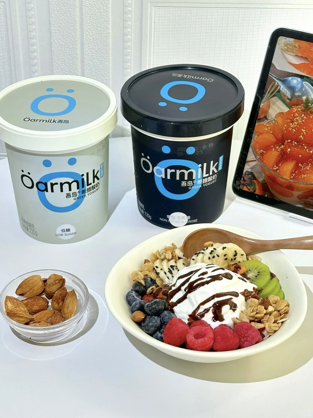 酸奶碗我用的是吾岛酸奶,不用过滤[大笑R]酸奶质地都很厚实。0蔗糖,口感浓稠又细腻,搅拌后吃起来像冰淇淋一样绵密醇厚的口感,敲适合健身党和减脂的小可爱噢~